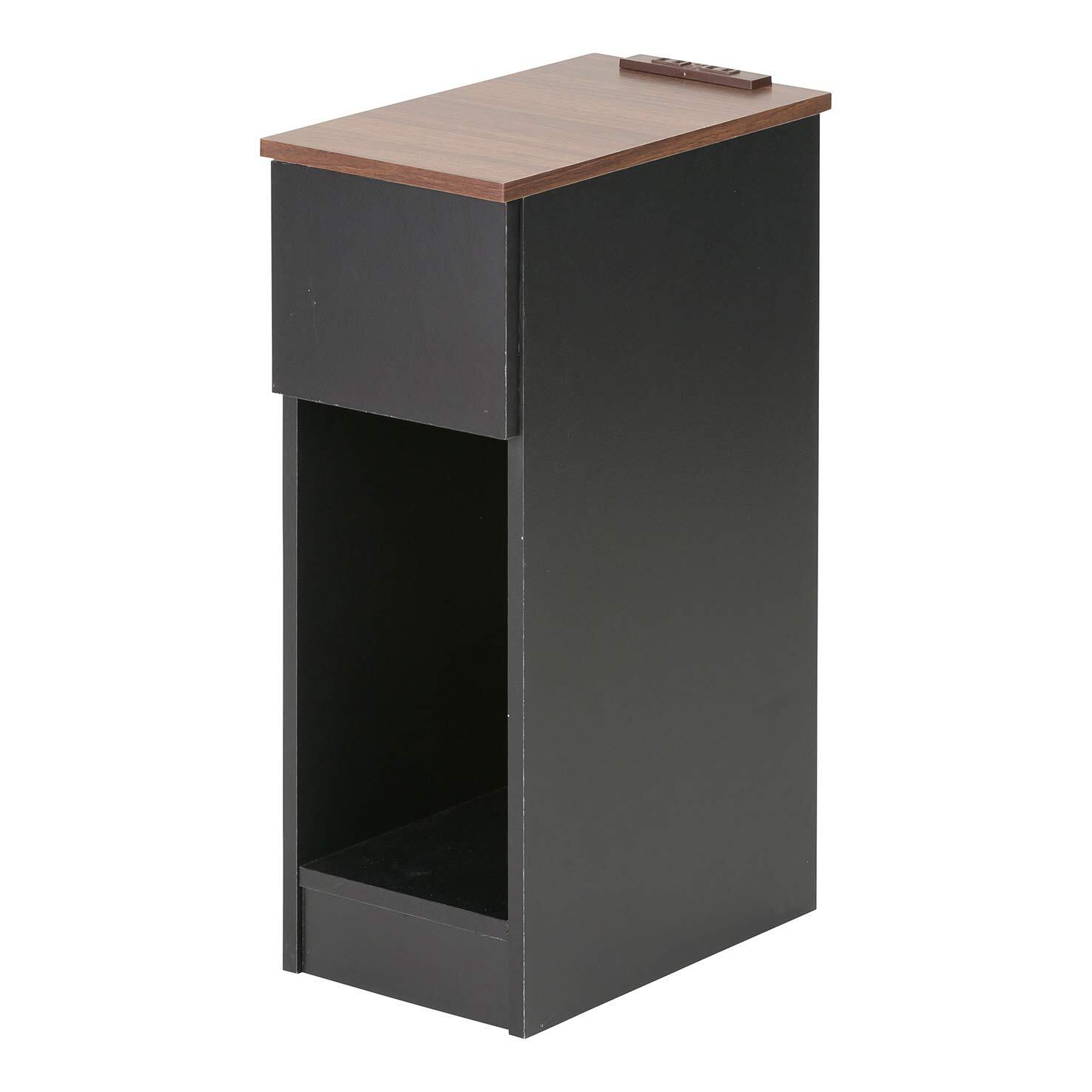 武田コーポレーション 20×35×55cm 収納・ラック・ナイトテーブル ヴィンテージ調サイドテーブル スリム(引き出し) WAL/BK H0-VSSH20WAL