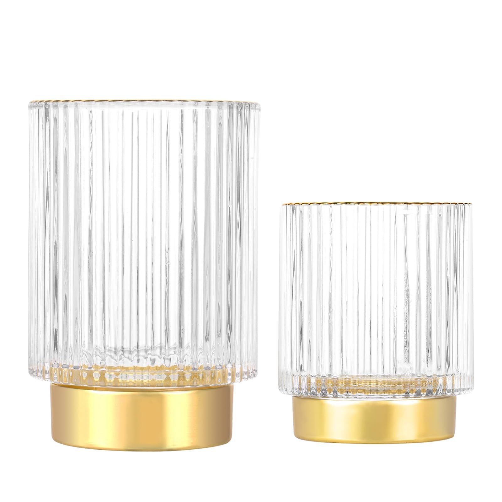 DASITON メイクボックス レトロなストライ プメイクブラシケース ガラスコスメ収納 メイクブラシスタンド 卓上文房具収納ボックス 歯ブラシスタンド(とうめい S+L)
