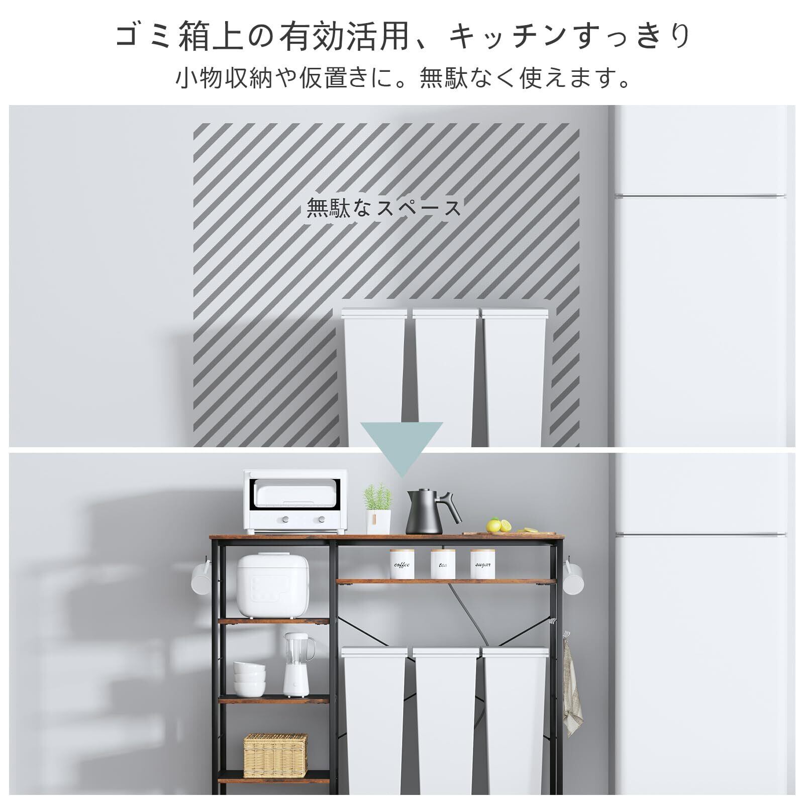 LunarLight ゴミ箱上ラック 幅120奥行き40高さ97㎝ 可動式棚 5段階高さ調節 左右差し替え コンセント付き フック6個付き ゴミ箱収納 レンジラック レンジ台 食器棚 キッチン収納 キッチン棚 カウンタータイプ 料理台 組立簡単 (ヴィンテージ)