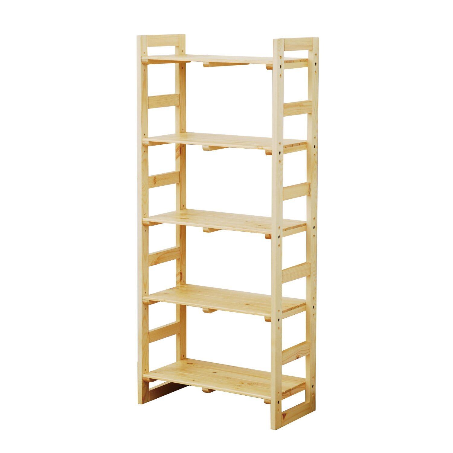 山善(YAMAZEN) ウッド ラック 幅60×奥行30×高さ140cm 5段 木製 棚板高さ調節可能 組立品(工具付き) ナチュラル SPR-14060NA
