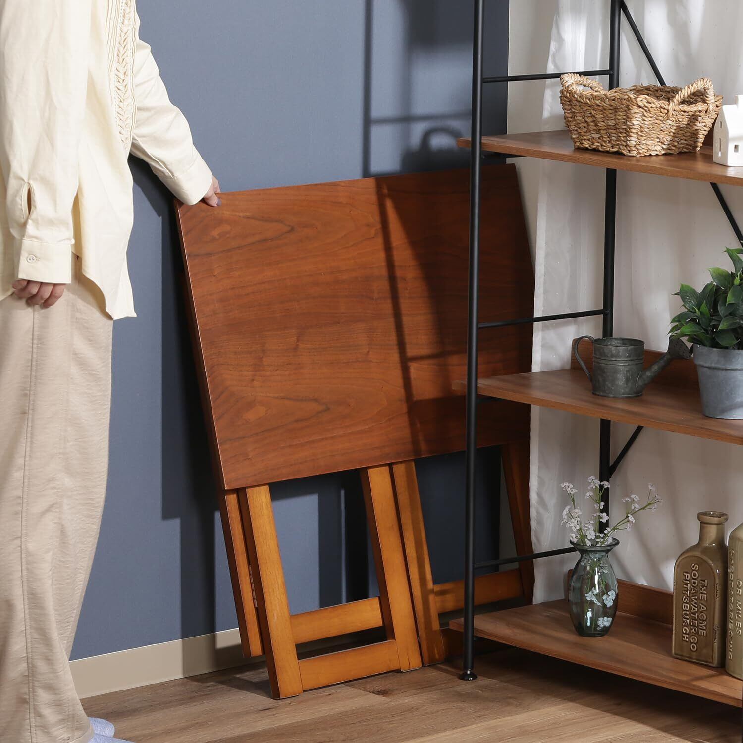 ●使わないときは折りたたんで収納が可能なテーブル
