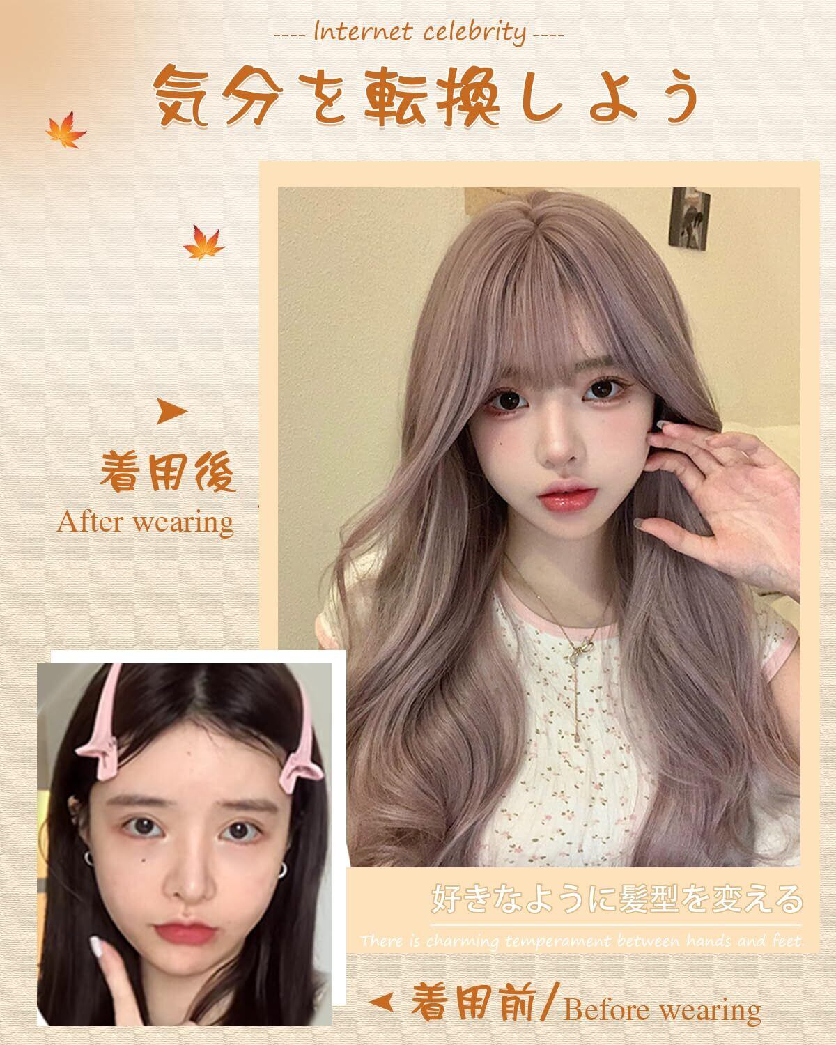 ❀【商品特徴】普通のカールではなく、レイヤーとデザインのあるカールです。頬の横のカールは、顔の輪郭をきれいに見せるために少し短くしています。バックのカールは少し長めにしてエレガントに見せています。前髪はふかし加工と手植え植毛によって作られ、一本一本の髪が立体感と空気感のある仕上がりになっています。高品質人工スキン製で、普通の人工スキンよりも自然で、分け目も自由にアレンジできます。つむじはI型の人工頭皮を使用し、頭皮に近い色で自然な輝きを映し出します。サイズはフックアジャスターで自由に調整できます。メッシュデザインと伸縮性のある素材のおかげで、ウィッグは通気性と伸縮性に優れ、頭に装着するのがとても快適です。