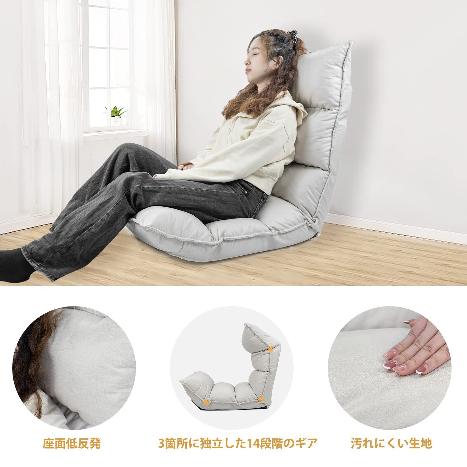 WAVV 座椅子 低反発座椅子ソファー 頭・背・脚独立可動3点14段階リクライニング 肉厚クッション 一人掛け座椅子 コンパクトサイズ ハイバック 撥水加工 フロアチェア 座椅子 (ベージュ)