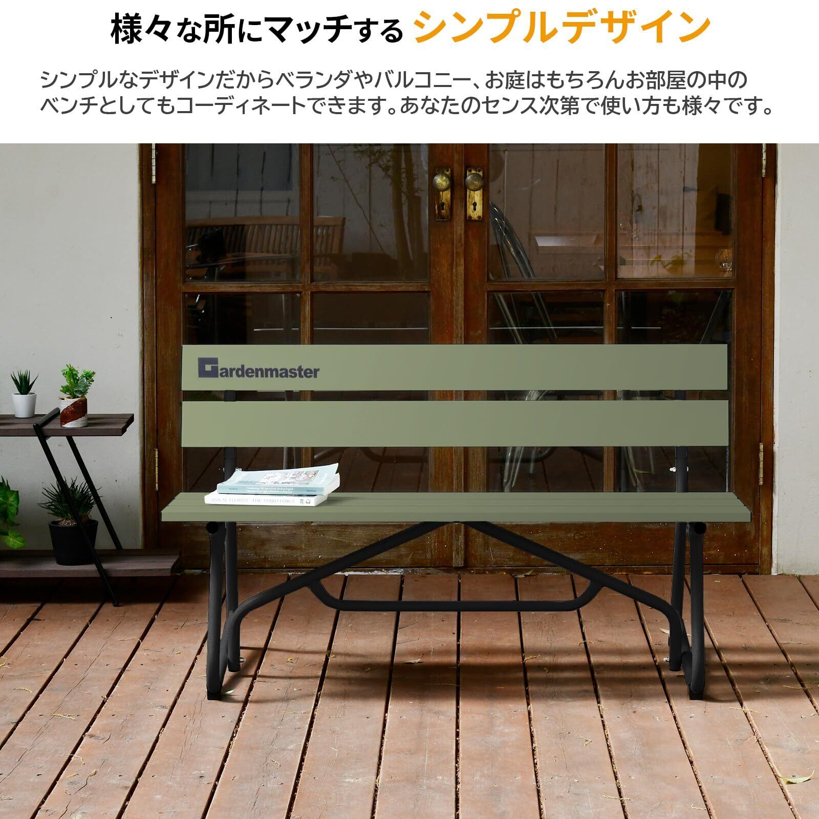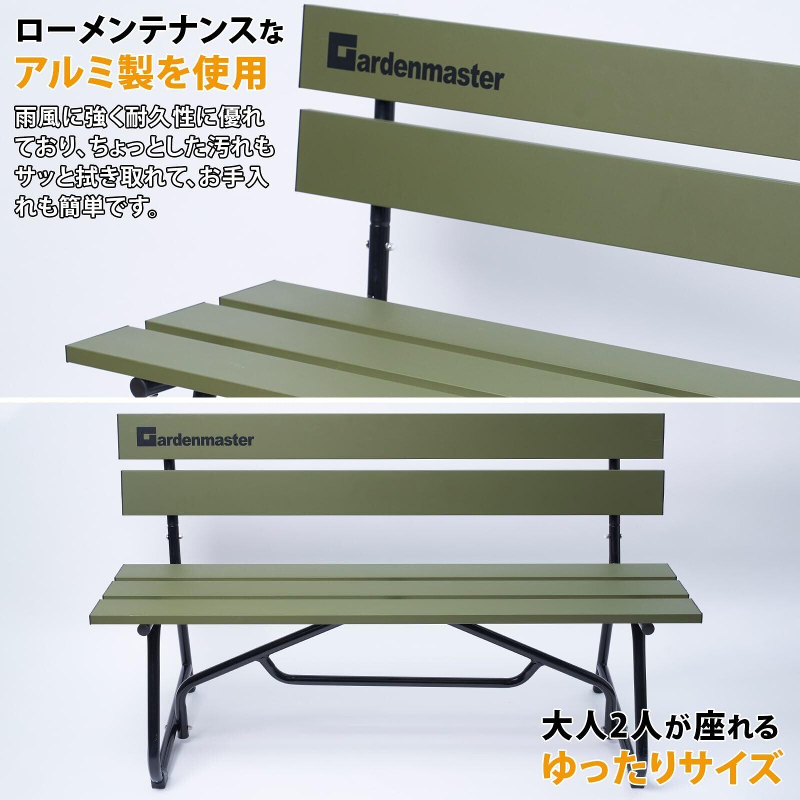 ガーデンマスター(Gardenmaster) アルミガーデンベンチ 幅120×奥行53.5×高さ69.5cm お庭 ベランダ テラス バルコニー 休憩所 喫煙所 KAB-1205GM オリーブ