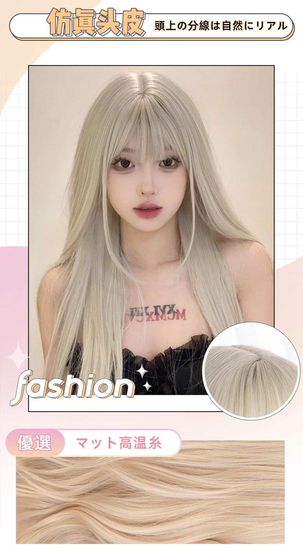 【素材】耐熱ファイバー製、ドライヤー ・アイロンを使用する時は180℃を超えないように注意してください。髪を梳くとき、少量の髪が抜けるのは正常な現象で、品質の問題はありません。