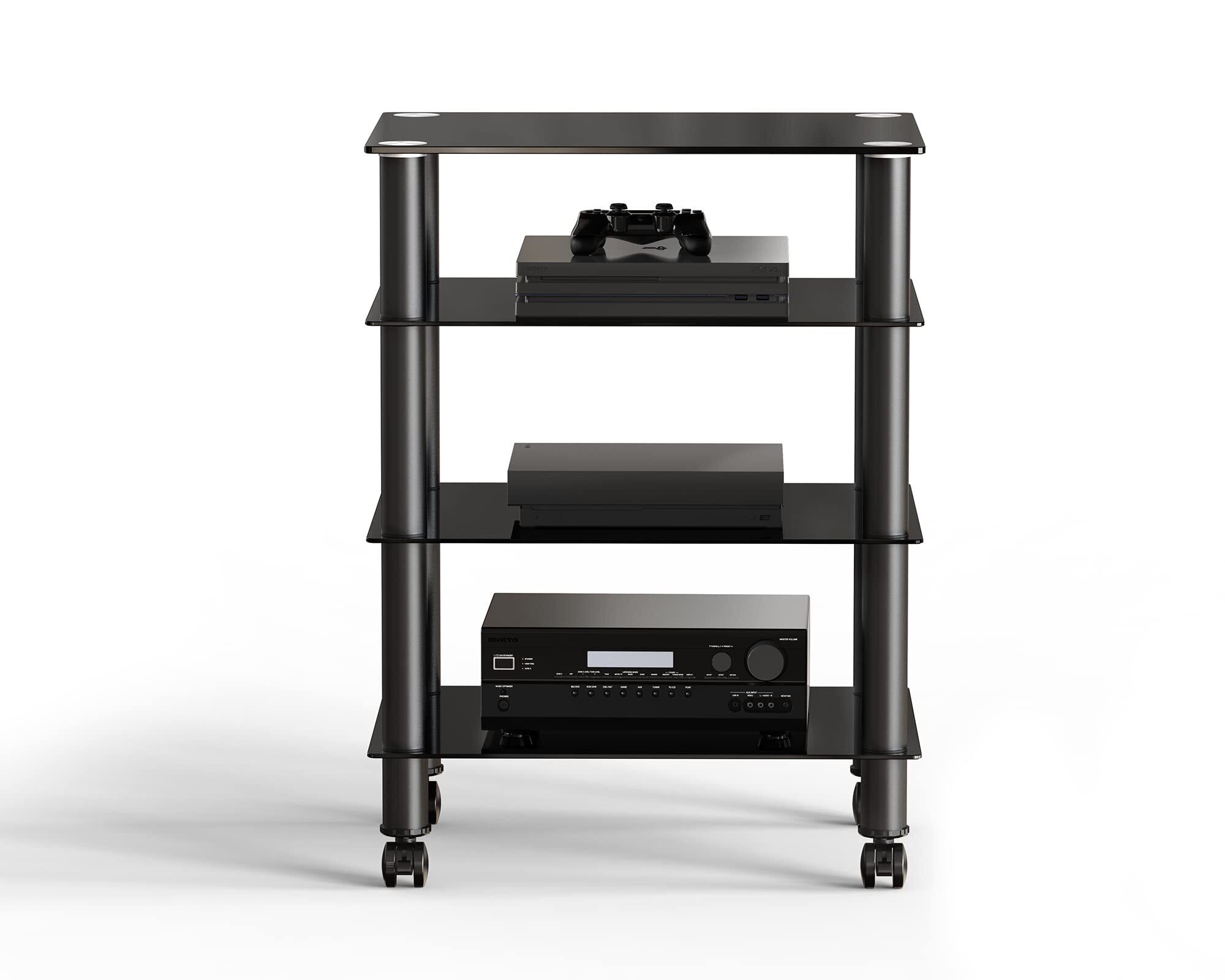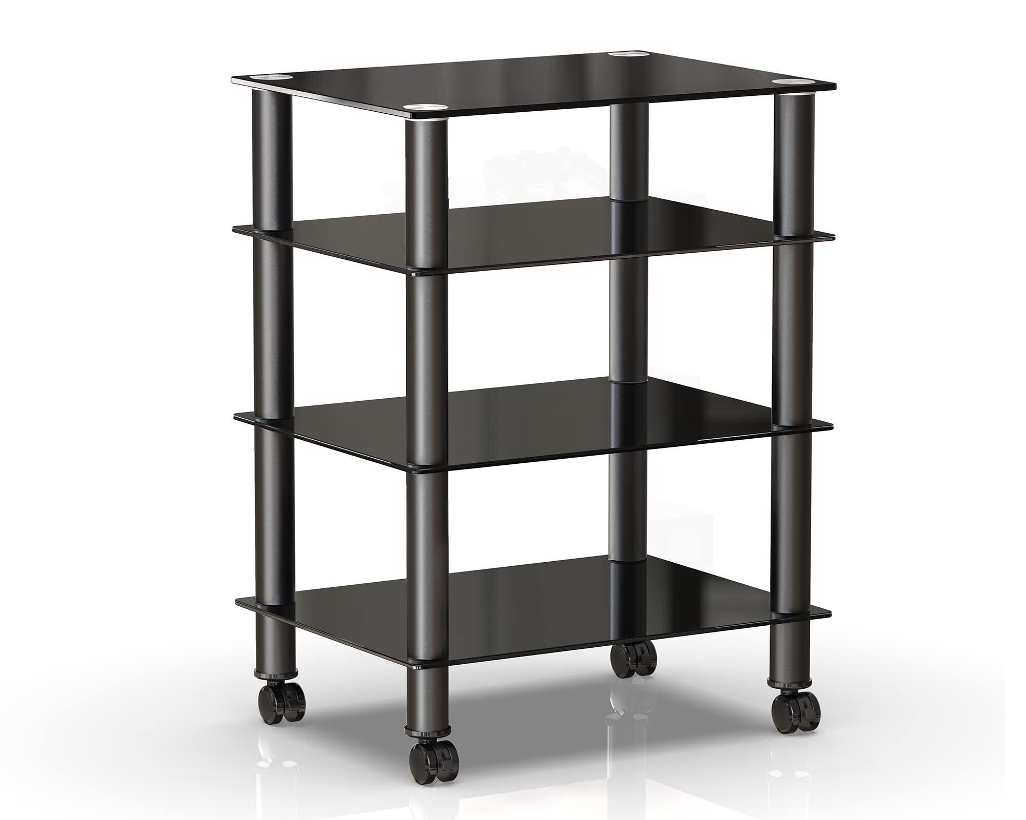 FITUEYES オーディオラック キャスター付き メディア スタンド コンポーネント 4段 強化ガラス 幅600mm ブラック AS406005GB