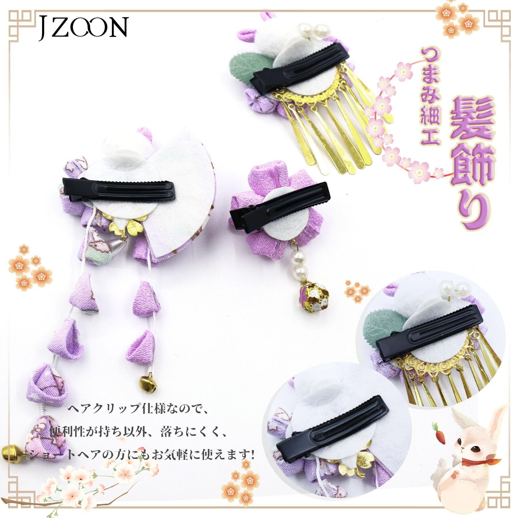 [JZOON] 髪飾り 3点セット 成人式 七五三 浴衣 袴 着物 振袖 和装 つまみ細工 花 卒業式 結婚式 人気 和服 ヘアーアクセサリー かんざし 結納 入学式 発表会 鈴付き 手作り