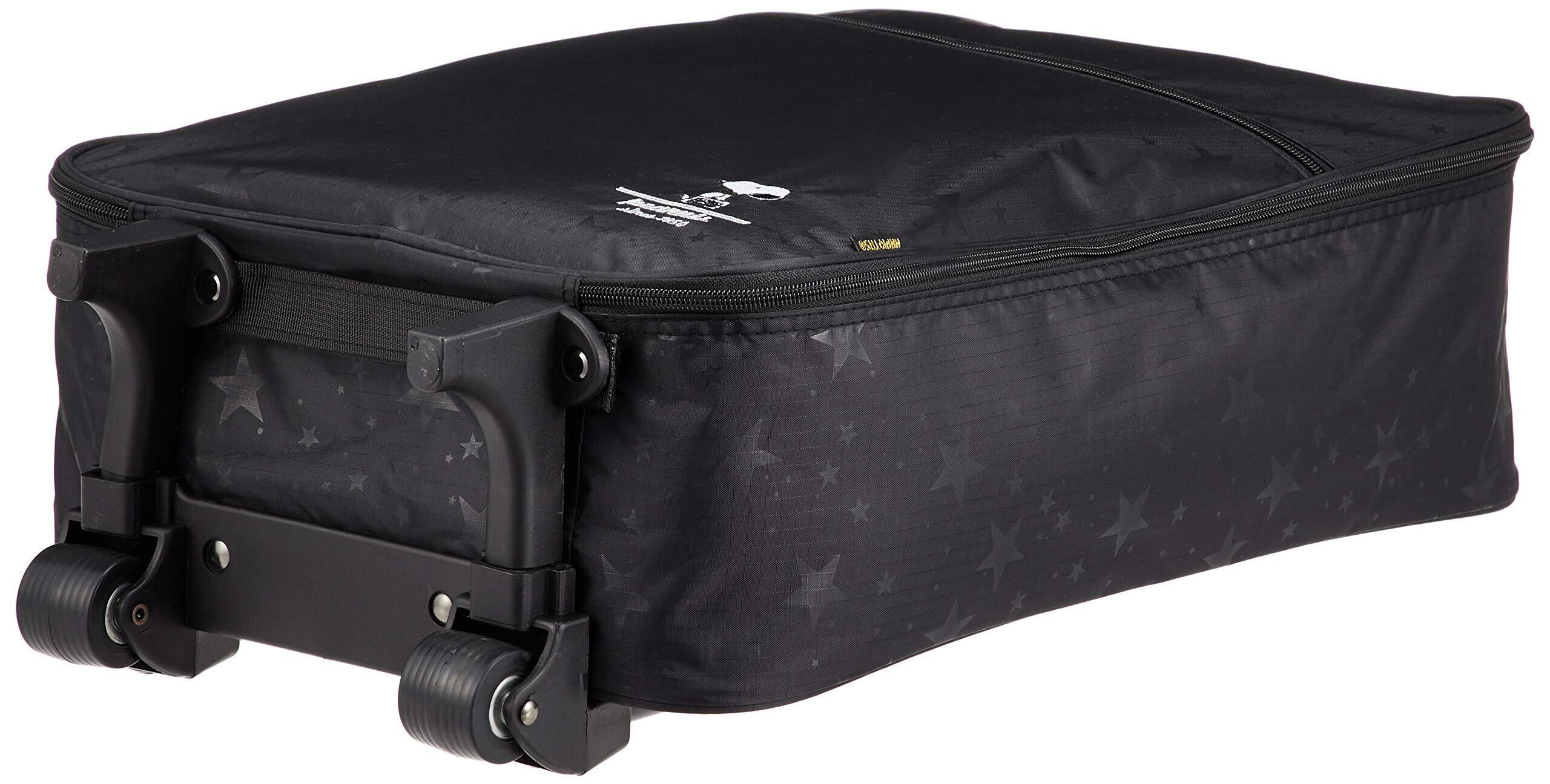 コンパクトに折りたためるスヌーピーのキャリーバッグ。性別や年齢を問わないシンプルなデザイン。組み立て簡単で、使わない時は小さく畳んで収納できるので、かさばらず収納にも便利。同柄のトートバッグをキャリーオンすればお揃いのコーディネイトが可能。