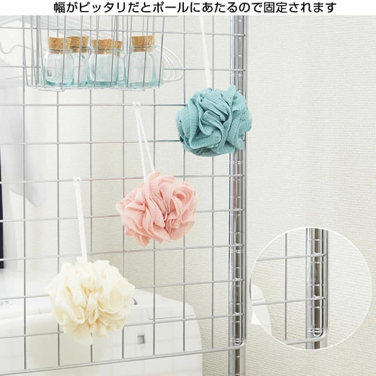 ●シェルフ(棚)の側面やワイヤーバーなどに付属のS字フックで取り付けます