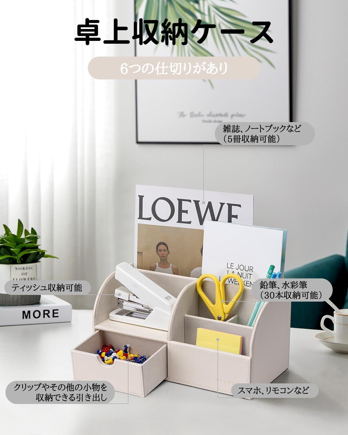 【小さいサイズと大容量】サイズ28.1*14.2*14.2cm 重さ0.82kg 。5つのコンパートメントと引き出しがあり、約ペン/鉛筆30本、雑誌2冊を入れることができ、一つだけでデスクを綺麗にします。