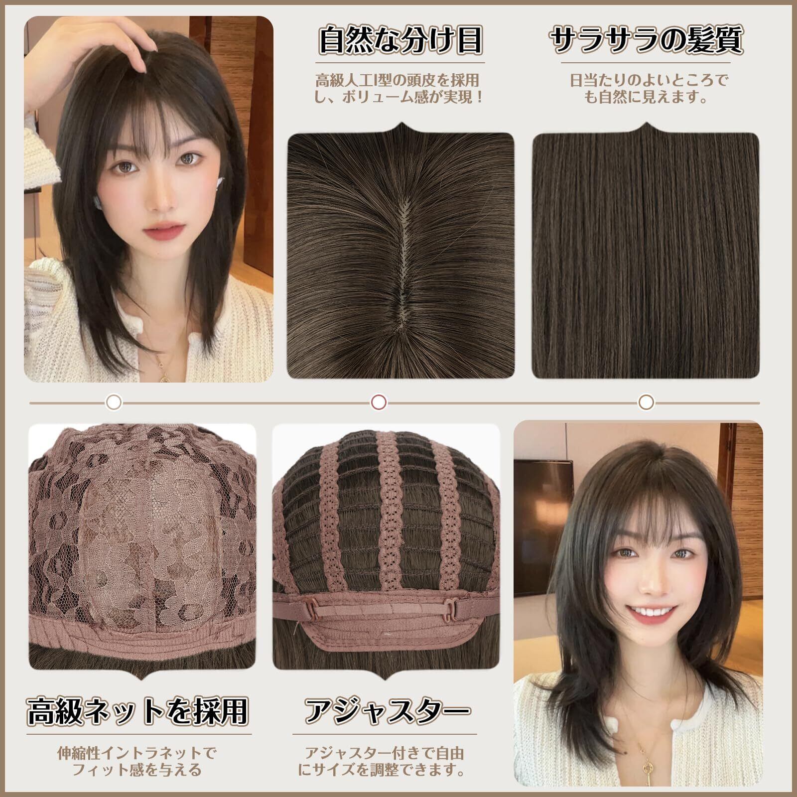 BARSDAR ウィッグ ストレート ミディアム セミロング レディース wig カツラ 女装 フルウイッグ 自然 黒茶 髪 小顔 可愛い 自然 耐熱 ネット付き アッシュブラウン