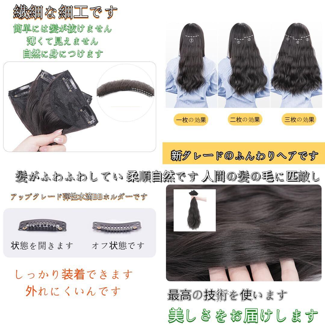【特徴】①人気の襟足エクステのランキングに入り、多くの女性に愛されています。②自然な融合度が高いです。自然な人工繊維の高品質な素材を使用しており、薄くてふんわりしているため、他人に見られることなく快適にフィットし、装着していても重くなりません。③簡単に装着できます。クリップタイプなので、初めての方でも簡単に使用できる襟足ウィッグで、脱落しにくくしっかりと固定されます。④3枚セットで自由に組み合わせることができます。※環境保護のため、簡易包装で提供しております。ご理解とご支援、誠にありがとうございます!