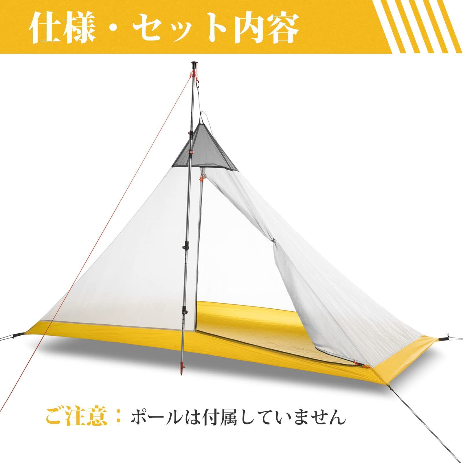 1~2人用 インナーテント キャンプ 蚊帳 モスキートネット 一人用テント メッシュテント 低荷重テント 登山 超軽量 通気性 設営簡単 ペグ付き ポール別売