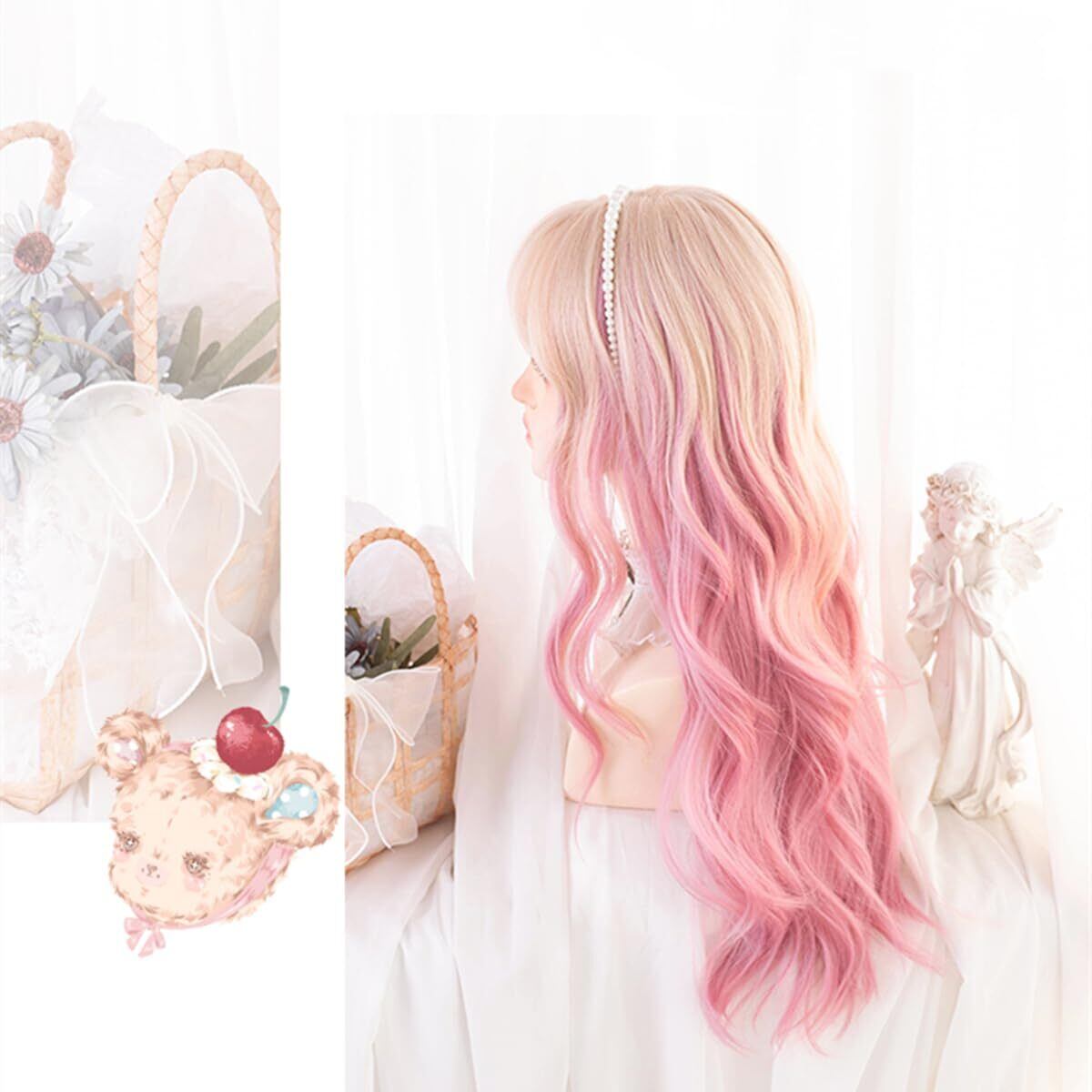 Sizuuenn 女性用 ロリータ レディースフルウィッグ ロングヘア カール ピンク ウィッグ 「ストロベリー弥耶」 グラデーションピンク 可愛い 耐熱ウィッグ 高温ヘア糸 コスプレかつら 専用ネット イベント 学園祭 文化祭 撮影用 変装用