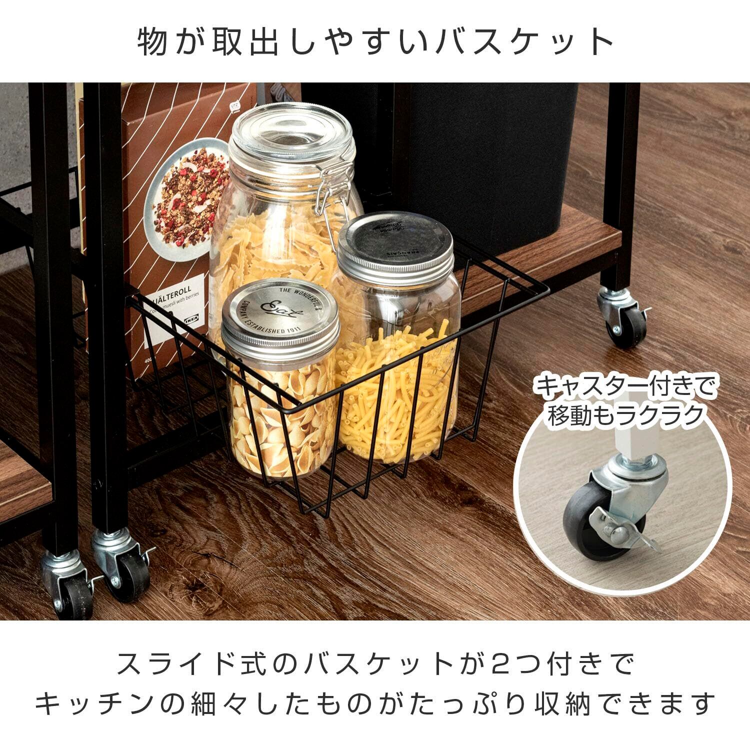 さらに2段のバスケット付きで、根菜や乾物、調味料の収納にぴったり!