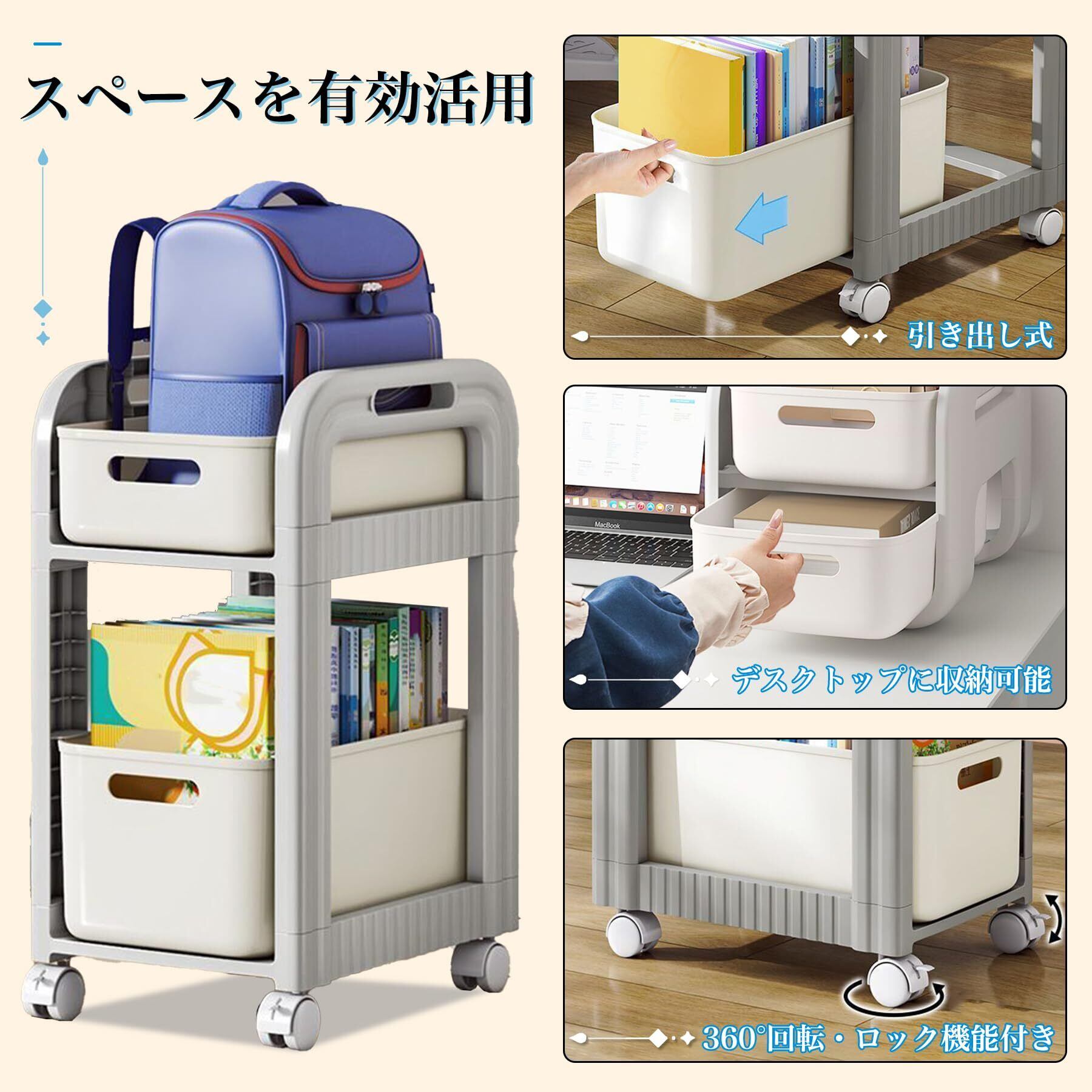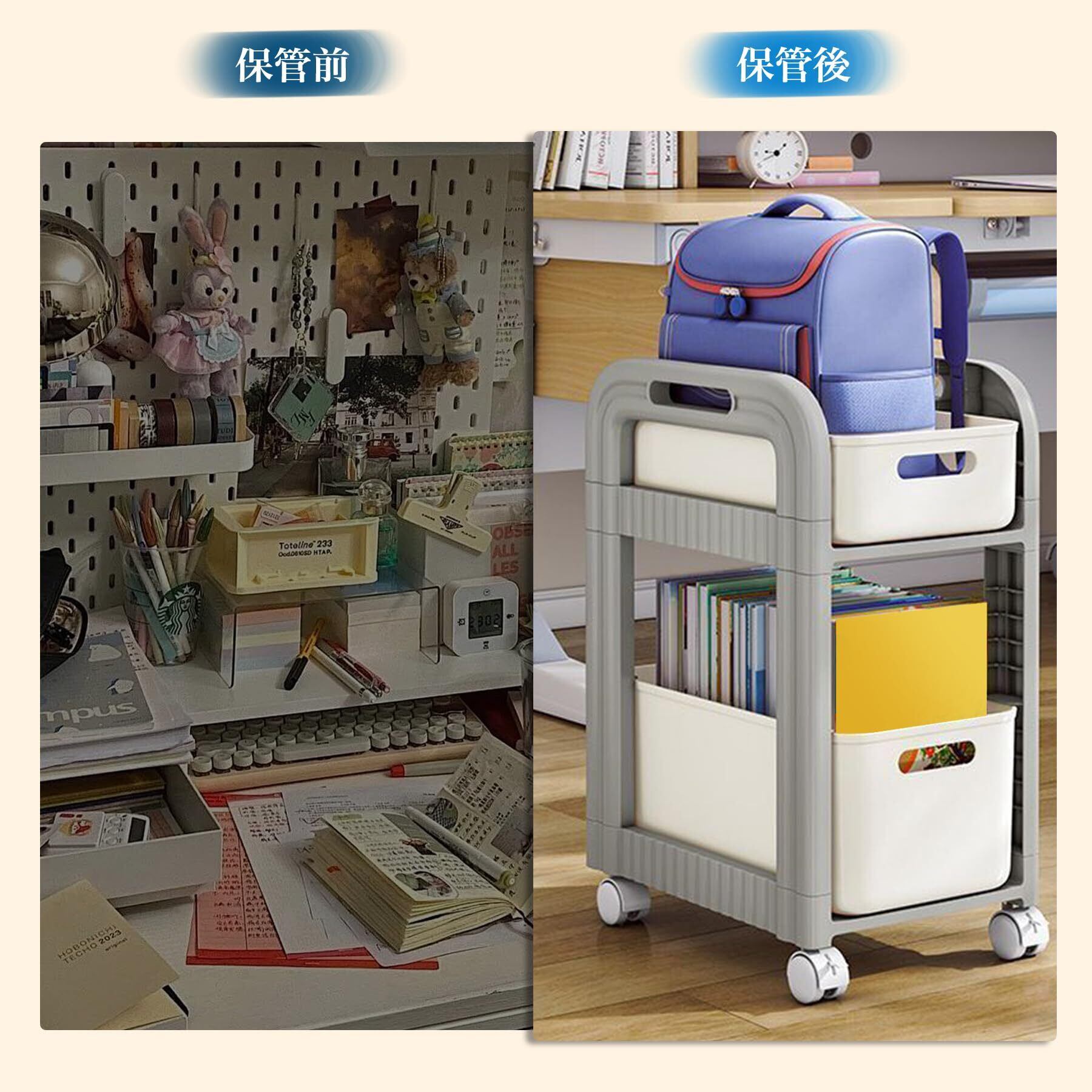 【二層式収納ラック・大容量収納】書類、文房具、書庫、雑貨などを深さに合わせて分類・収納できます。キャスターは取り外し可能で、卓上引き出しとしても使用できます。キッチン、リビング、寝室など、あらゆるお部屋に幅広くお使いいただけます。