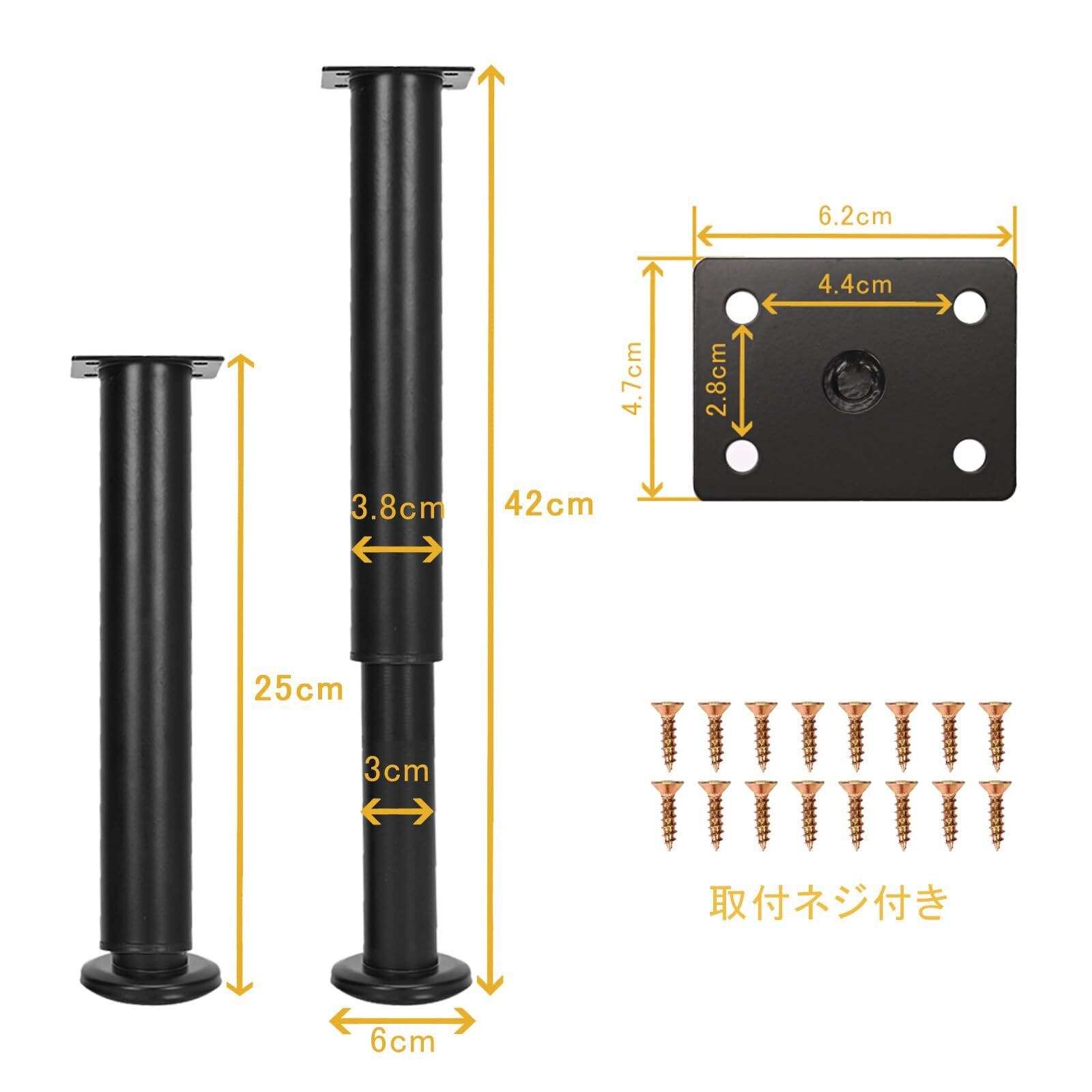 テーブル 脚 テーブル足 伸縮式 アイアンレッグ 机 高さ調整 4本セット 25-42cm スチール製 ローテーブル 脚 ソファーの置き換え足 デスク キャビネット交換脚 会議用のデスク 丸足の机 ダイニングテーブル 脚 パーツ (プラック)