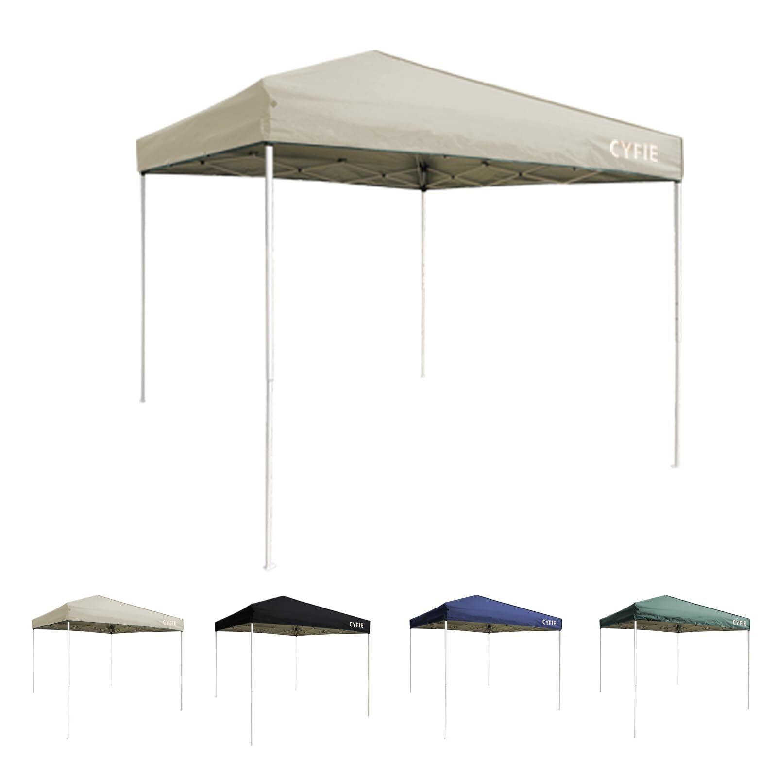 CYFIE タープテント 2m×2m 遮熱 遮光 UVカット耐水 防風 ワンタッチ設営 3段階調節 コンパクト収納 イベントテント 運動会 業務用 祭り 屋台 アウトドア用 スチールフレーム 錆び防止 設営説明書付属 収納袋付き キャンプ バーベキュー 日よけ 快適空間 (カーキ, 2m×2m)