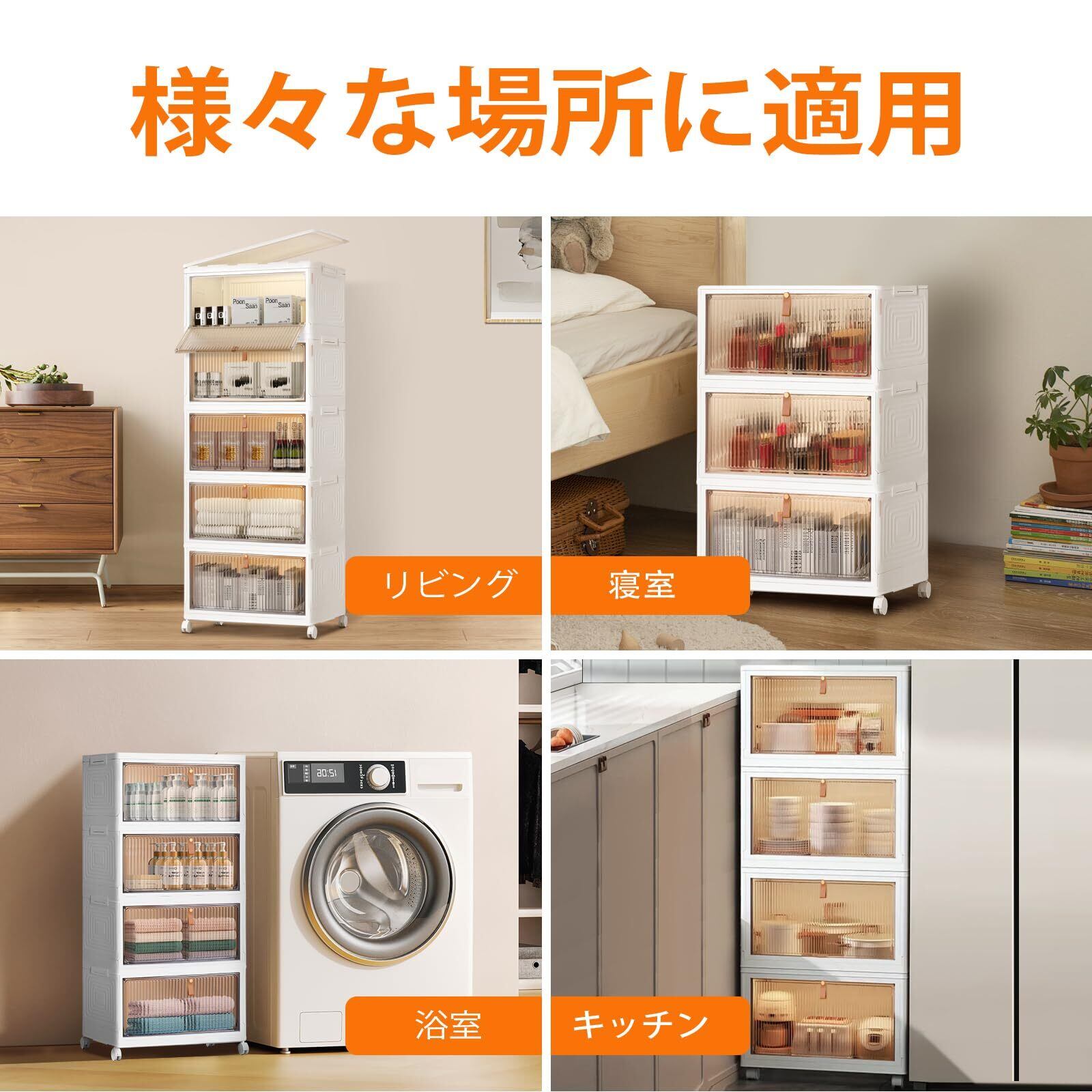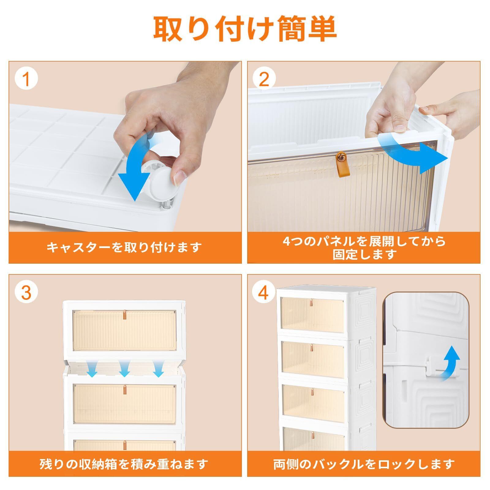 【より親切なデザイン】:収納箱上部の蓋と前扉が開くことができ、物の出し入れが簡単です。また、前扉には強力マグネットを採用しており、勝手に開きません。半透明の窓で中身が簡単に確認することができます。従来の折りたたみコンテナよりもっと便利です。