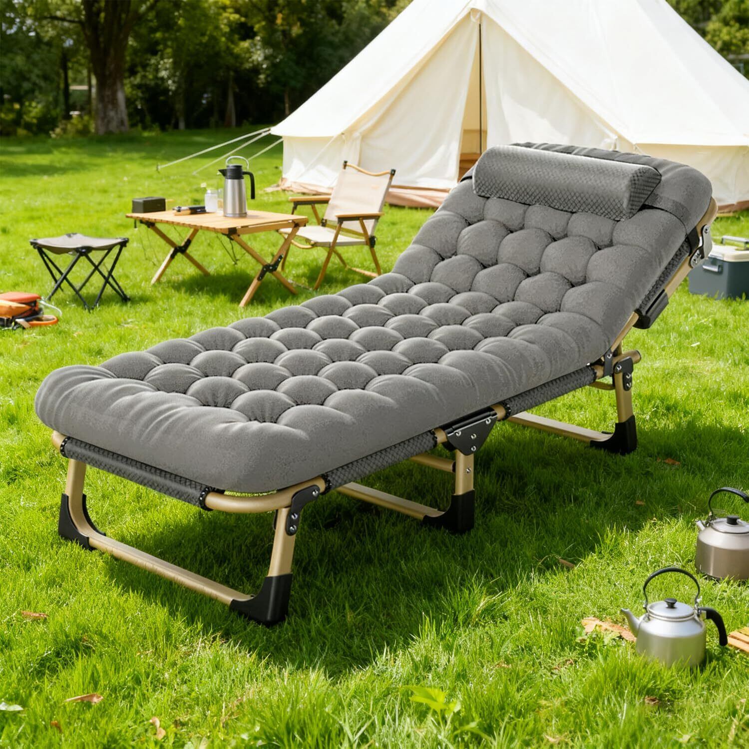 折りたたみベッド 簡易ベッド キャンプコット サマーベット 枕付き 5段階調整 折り畳み式 通気性 超軽量 コンパクト 省スペース アウトドア ビーチ 日光浴 緊急時 防災