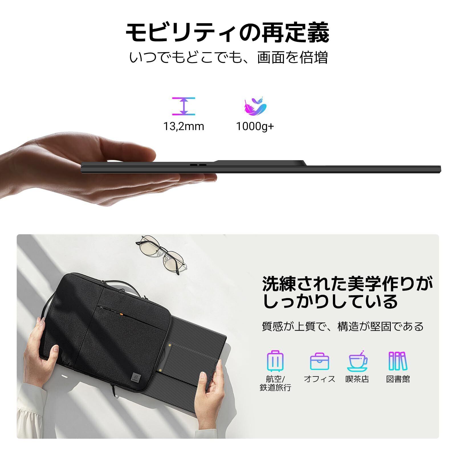 【2026最新設計版一体型モバイルモニター】Blackview最新設計版モバイルモニターは磁気吸引式スタンド+スクリーンでシームレスに統合され、携帯保護を両立し、360°自由回転で多角オフィスを満たす、スタンドは安定した支持台であり、収納用の保護カバーでもあり、ディスプレイを効果的に保護できます。ミニスタンドと組み合わせることで、横画面と縦画面の切り替えが自由にでき、作業効率を向上させるだけでなく、日常のエンターテインメントニーズも満たすことができます。