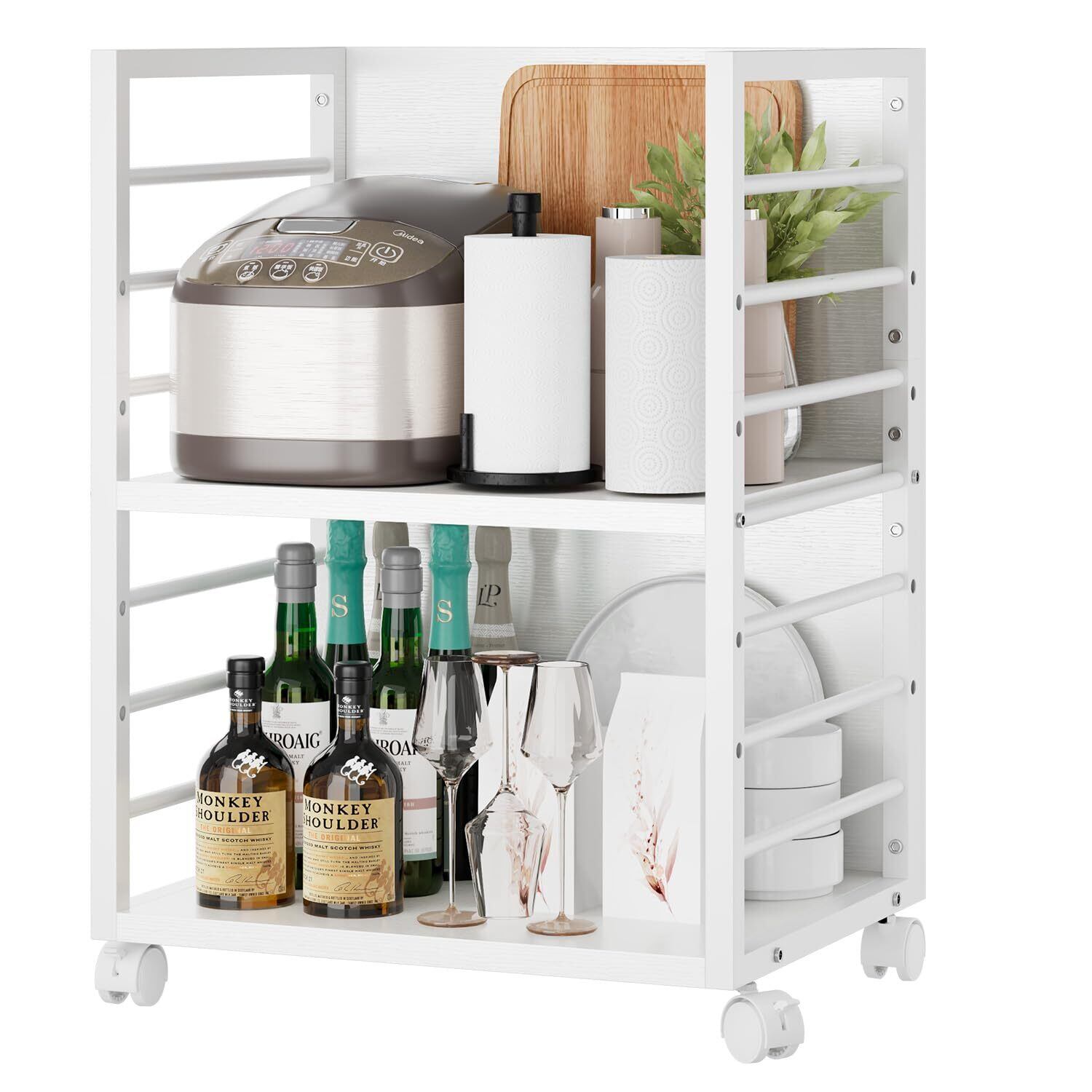 IBUYKE キッチンラック ワゴン スチールラック 目隠しワゴン キッチン 2段 可動棚 キャスター付き デスク下 オープン収納 プリンター台 棚板高さ調節可能 簡単組立 タワー 収納可能 ホワイト JPTLJ024W