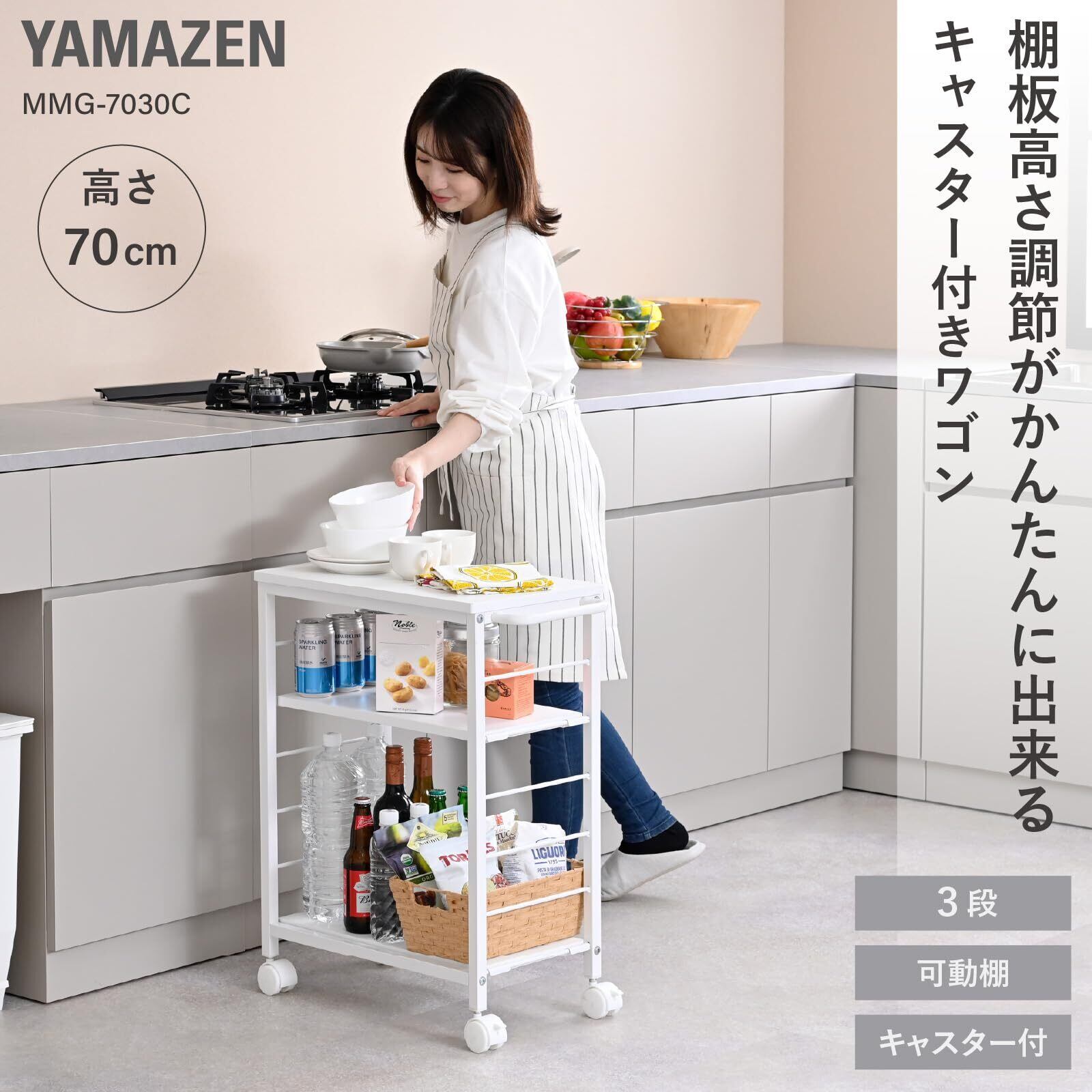 山善(YAMAZEN) キッチンワゴン キャスター付き 3段 可動棚 キッチン 収納 耐荷重50kg デスクサイド ワゴン プリンターラック 幅30×奥行56×高さ70cm 組立品 ホワイト/マットホワイト MMG-7030C(EWH/MWH)
