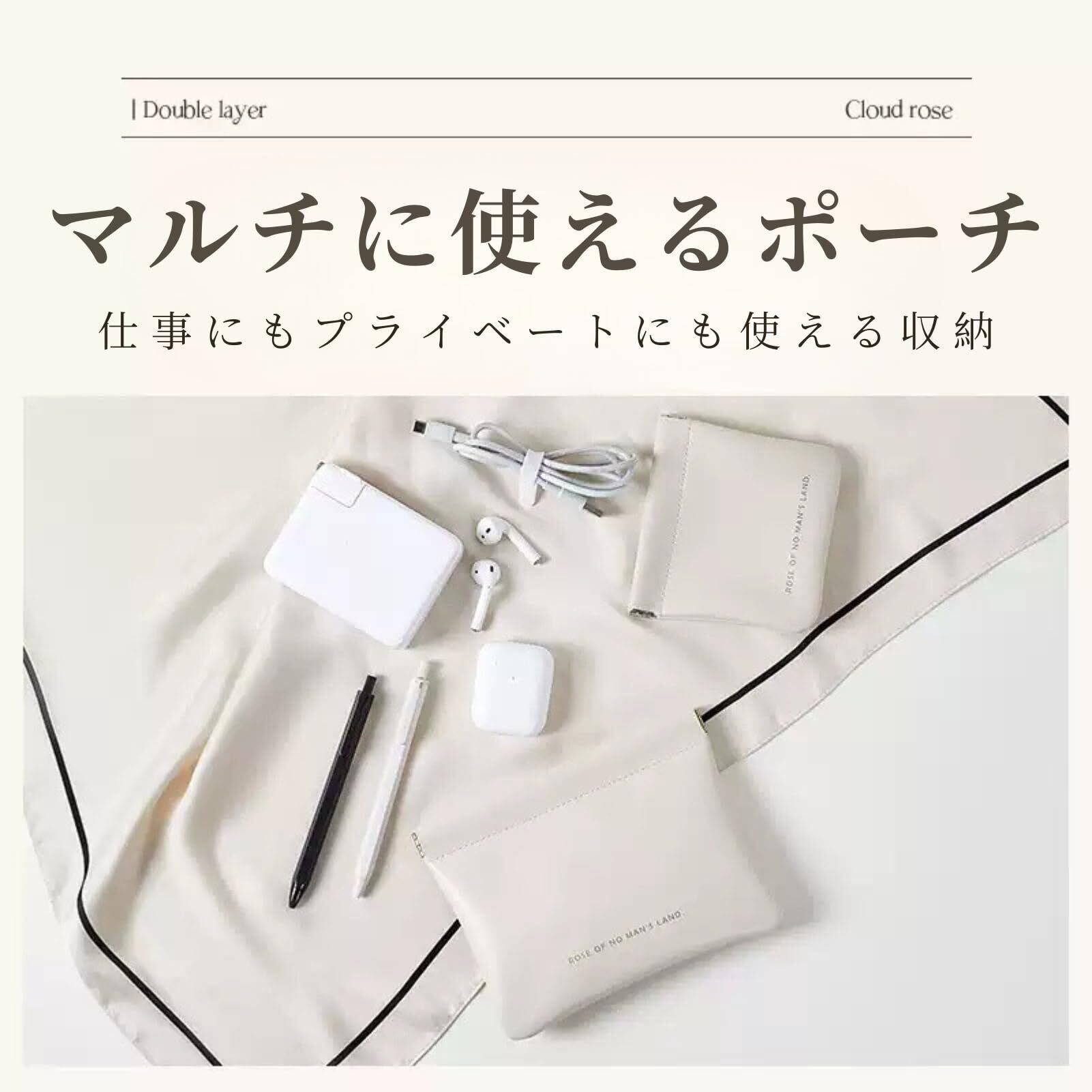 化粧ポーチ 2個 セット ポーチ 小物入れ 旅行 ミニポーチ 大きめ 小さいめ おしゃれ 可愛い ナプキンポーチ シンプル メイクポーチ コンパクト (2, クリーム)