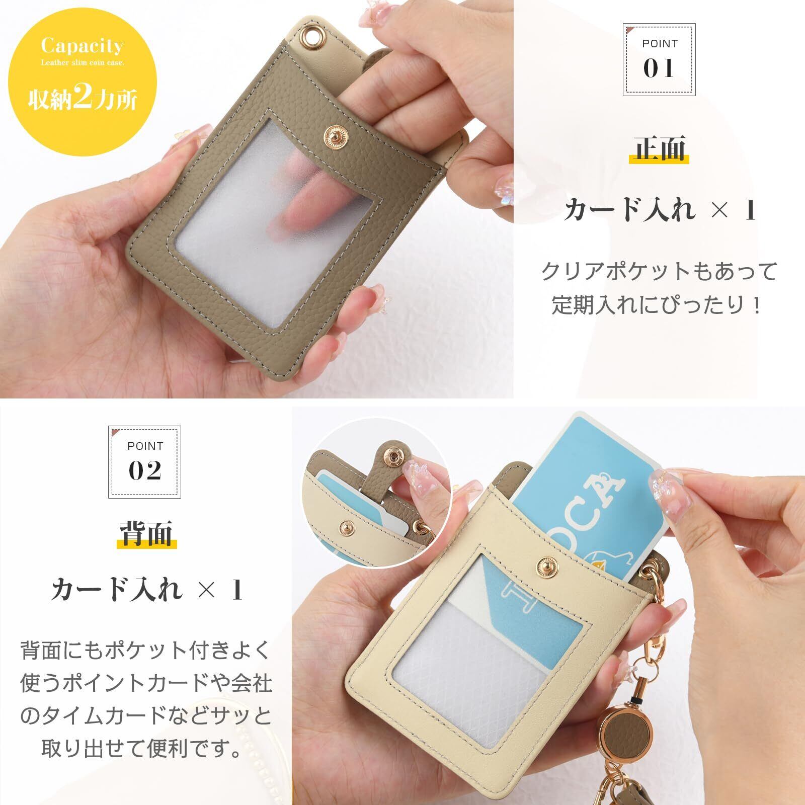 特徴 リール付き ストラップ付 両面パスケース 定期入れ