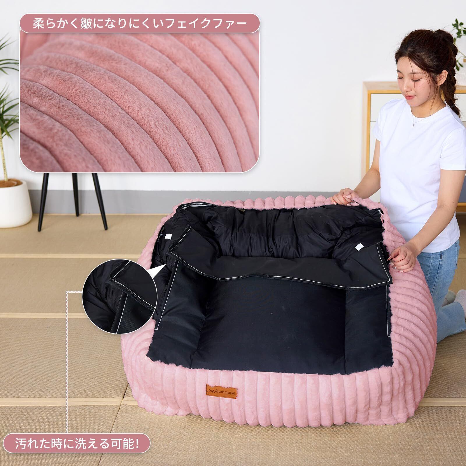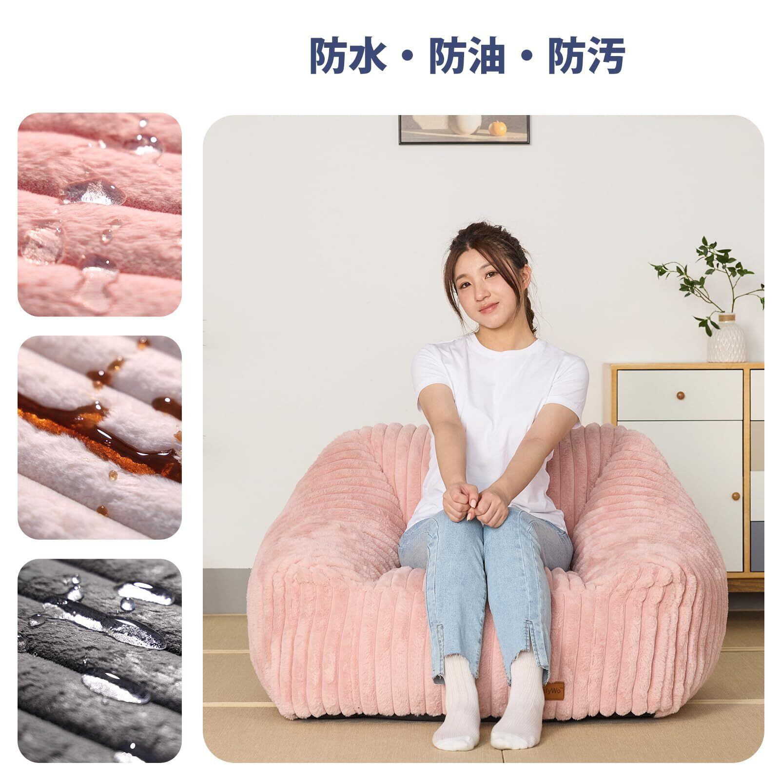 クッションソファ 1人用防水防油防汚生地 高密度ウレタン 型崩れなし 再充填不要 ビーズクッション 特大(85×104×60cm)洗えるカバー 一人暮ら(ピンク フェイクファー)