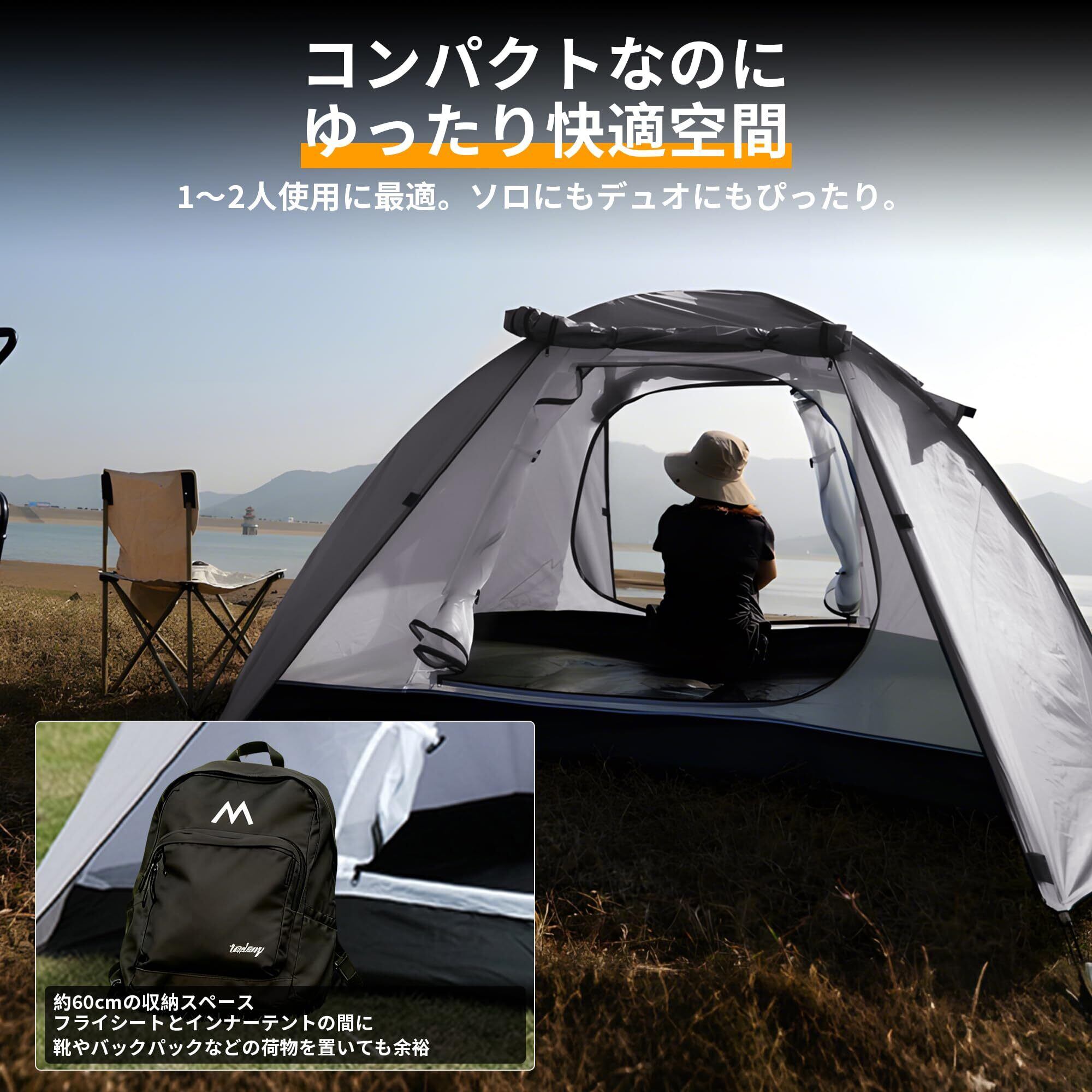 ドームテント 2人用 1人用 軽量 ソロテント ツーリング 山岳テント アルミ製ポール 自立式 簡単設営 キャノピー ダブルウォール 4シーズン 耐水圧3000mm 二重層 前室 メッシュインナー 前後ドア 通気 キャノピー 簡易 初心者向け キャンプ アウトドア 収納袋付き
