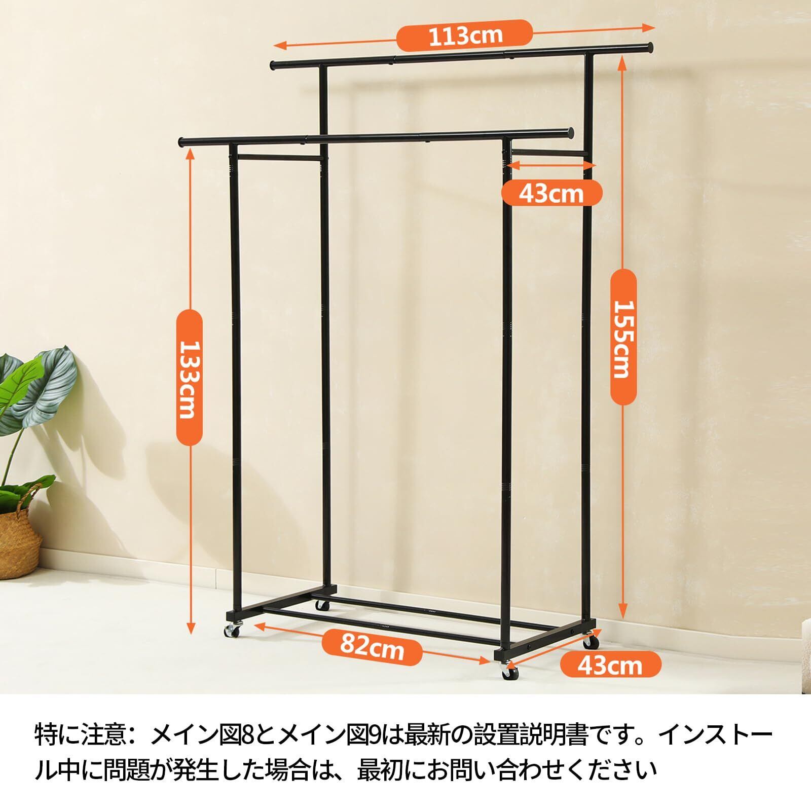 ORLOTSONハンガーラック 2段 耐荷重80kg 洋服ラック キャスター付き 頑丈 大容量 パイプハンガー 組み立て簡単 耐久耐荷重 洋服掛け 服掛け ハンガー 収納 室内干し 多機能収納 おしゃれ ダブル ブラック