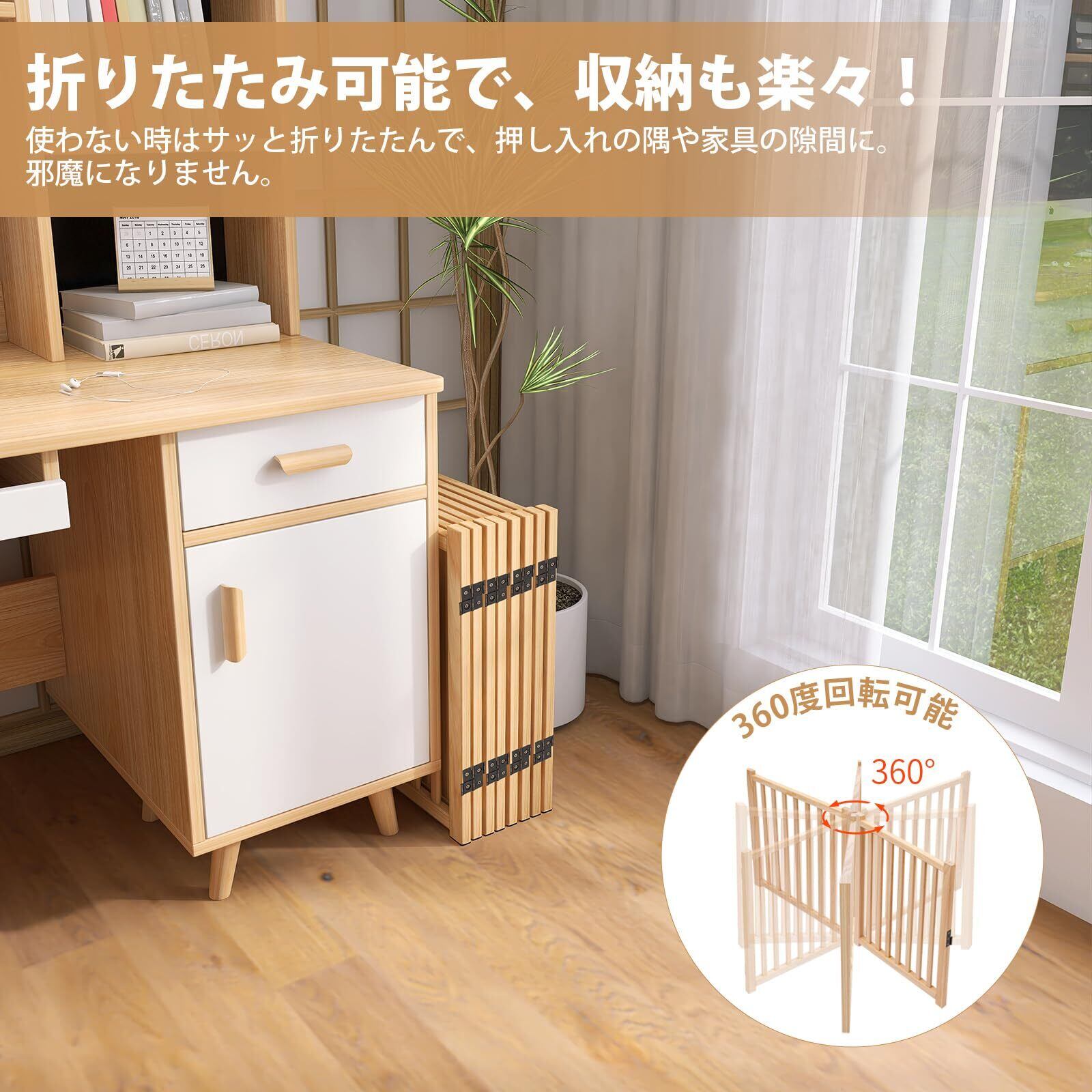 ペットゲート ドア付き 置くだけ 犬 ゲート ペットフェンス 高さ58cm 幅468cm 自立型ゲート 折りたたみ式 犬フェンス 室内用 ペット飛び出し防止柵 木製 玄関 軽量