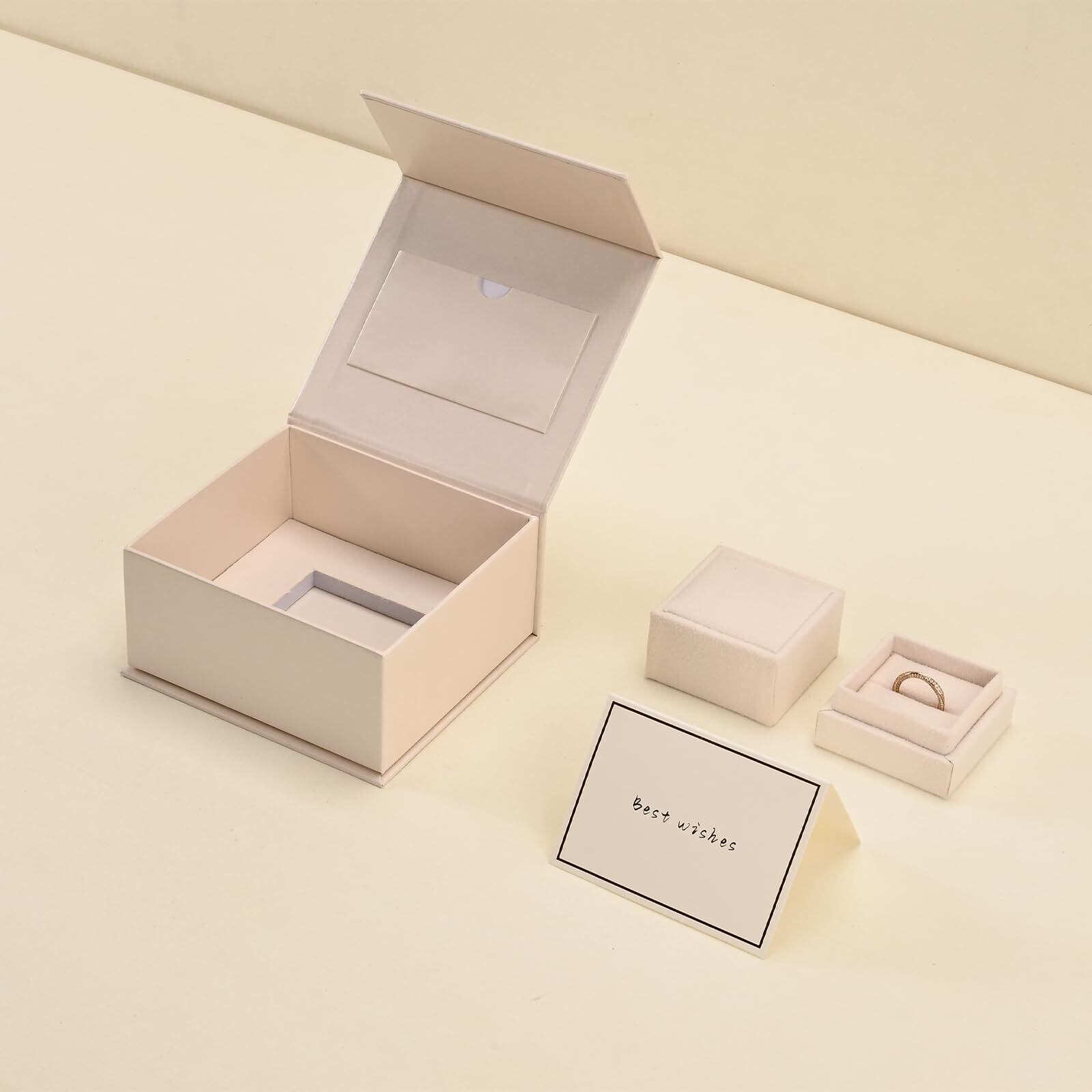 Oirlv 指輪ケース 1個 カード付き ギフトセット ケース 高級 おしゃれ 記念日 プレゼントなどに適当 適格請求書に対応 H19901 (ベージュ)