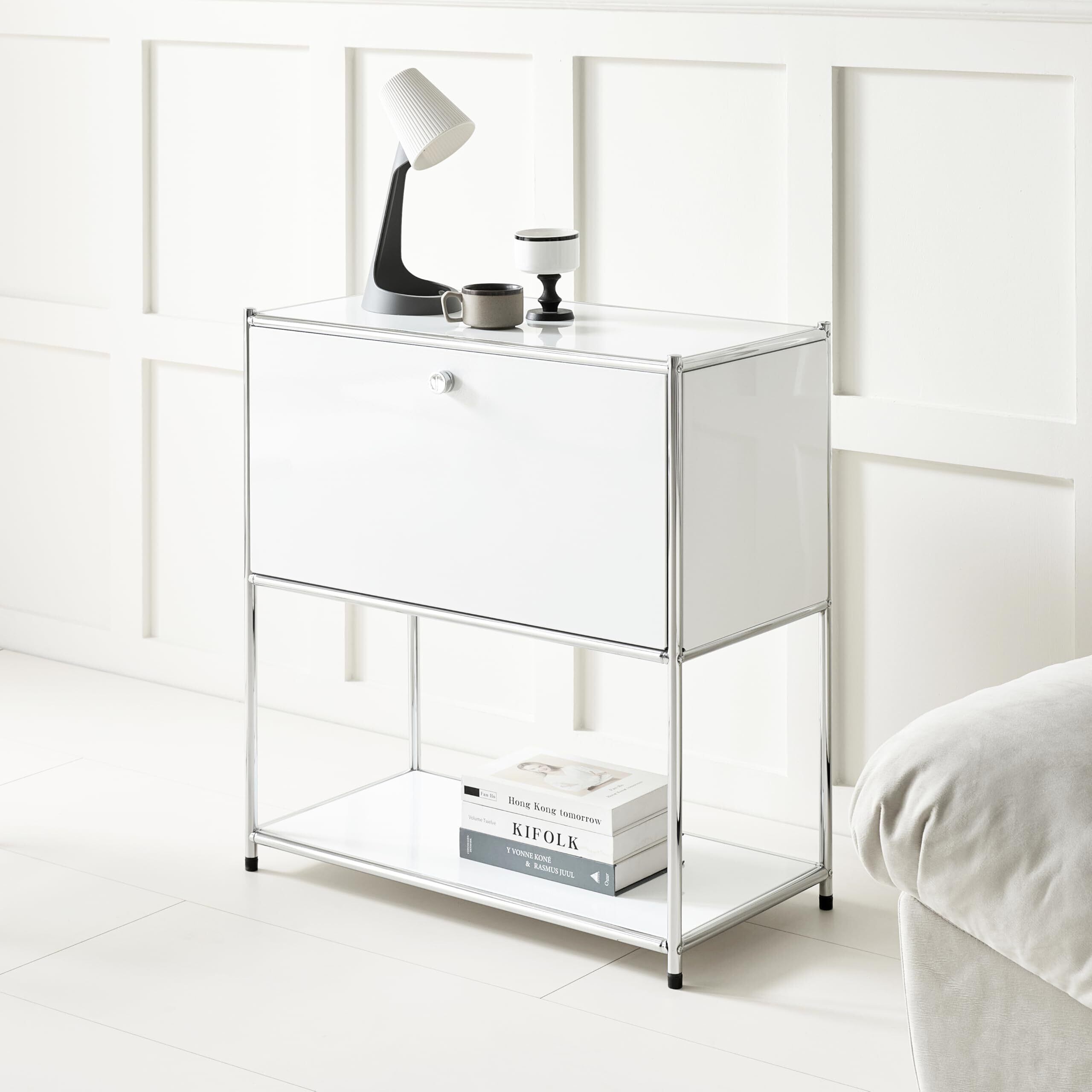 モジュール2段 サイドボード 収納キャビネット モジュール家具 フリップトップキャビネット ベッド周り収納 ナイトテーブル 韓国インテリア サイドテーブル 韓国家具 収納 (ホワイト)