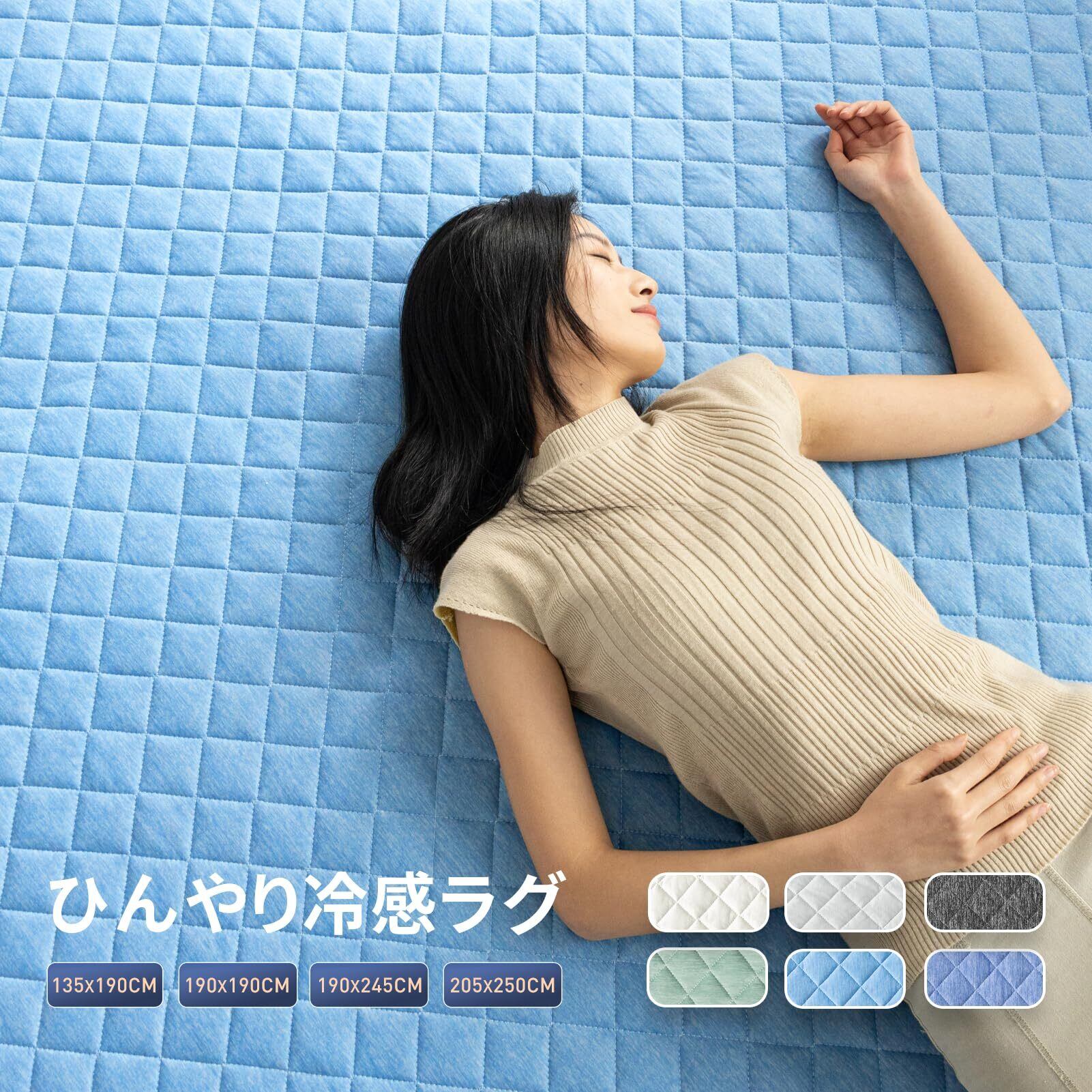 Phantoscope 夏用 ラグマット 冷感キルトラグ ひんやりラグ ラグ ラグカバー 接触冷感 夏 ラグマット 190×245cm(約3畳)カーペット ラグ 洗える 防音カーペット 滑り止め ひんやり 防ダニ 抗菌 防臭 ライトブルー