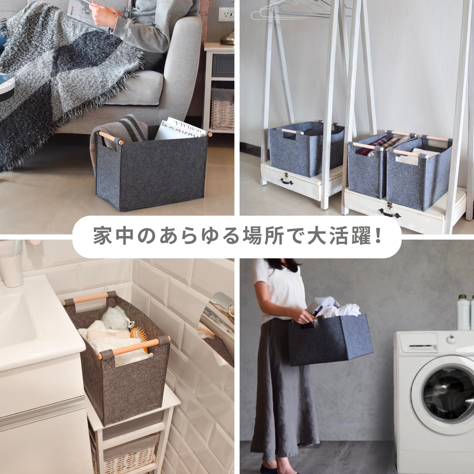 【北欧風のおしゃれな見た目】 シンプルで温もりある北欧風デザイン。フェルト素材とログ(木)のナチュラルな組み合わせが、どんなインテリアにも自然に溶け込みます。おしゃれに収納したい方にもおすすめ。