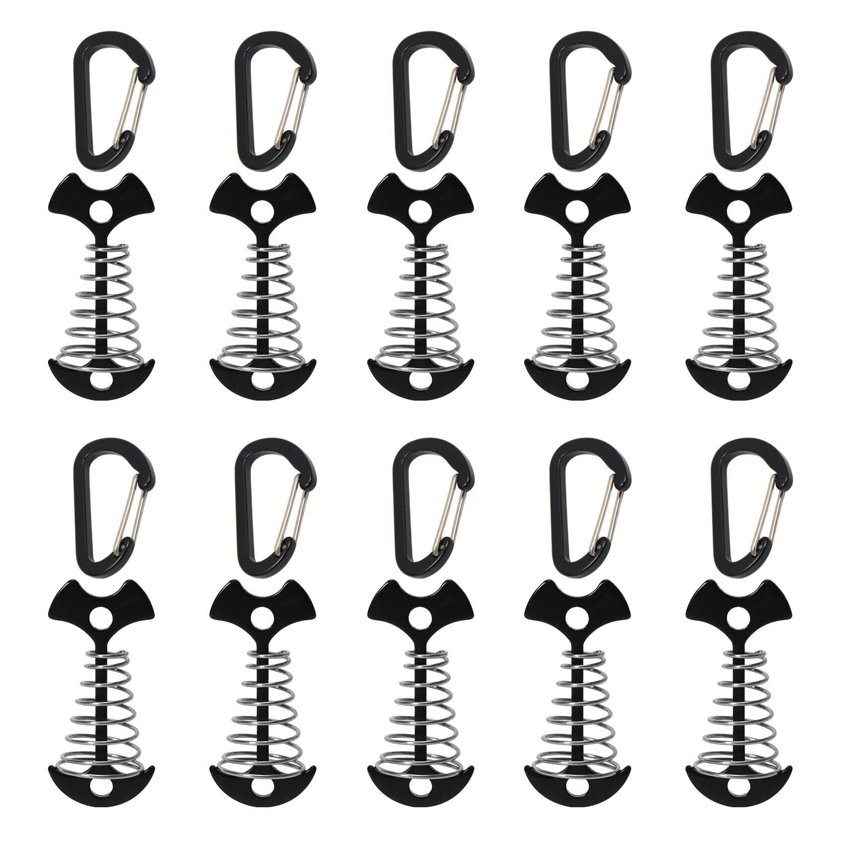 LOYELEY ウッドデッキ ペグ 自在金具 キャンプ キャンプ用テント ウッドデッキ専用 魚骨型 対応 ペグ・アンカー カラビナ付き スプリングセット アルミ製 留め具 軽量 自在金具 10本セット