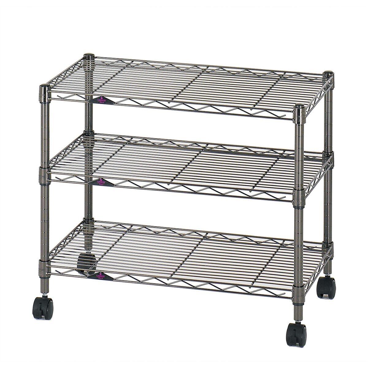 ドウシシャ ルミナス ブラック 幅60 3段 スチールラック 収納棚 艶のある黒色 幅59.5×奥行34.5×高さ51cm 全体耐荷重180kg 頑丈 キャスター付き 防錆加工 ポール径19mmパーツ対応 シェルフ TV収納 テレビラック BN5160-3