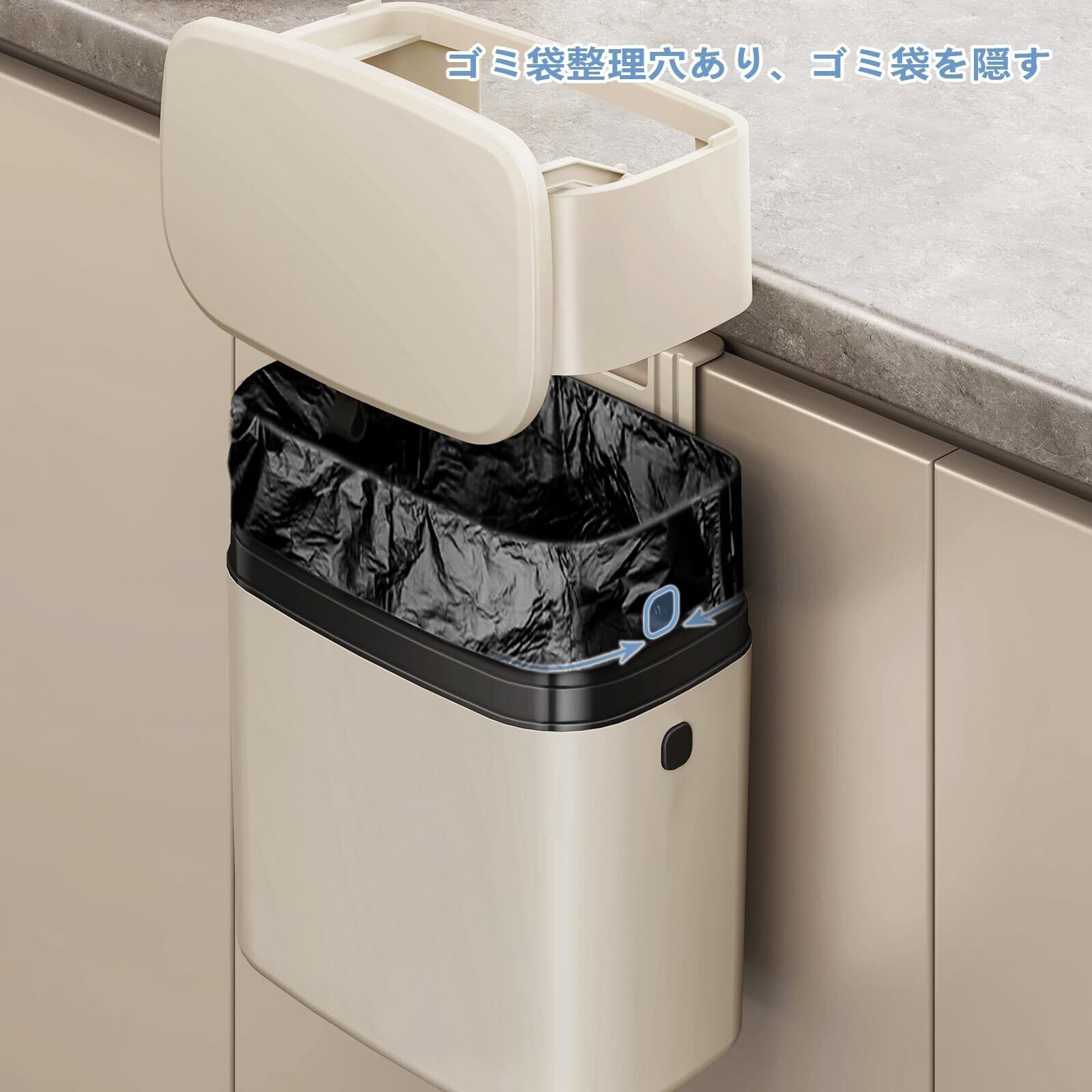 【2つの取り付け方法】:キッチン ゴミ箱は付属のシールで壁に取り付けたり、フックで扉に引っ掛けたりすることができます。ゴミ箱が床にないので、床の掃除ががとても楽になります。それから、腰をかがめてゴミを捨てる必要はありませんので、とても便利です。