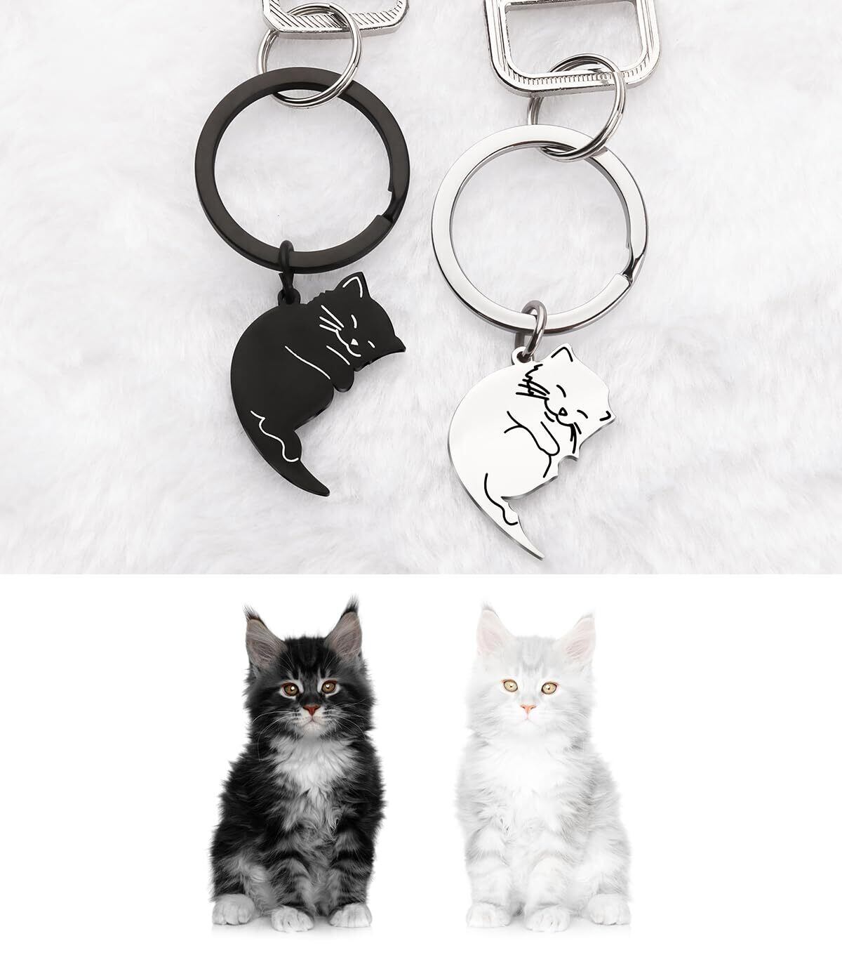 [Looking] 猫 キーホルダー カップル ペア お揃い かわいい シンプル黒 白 猫ちゃん キーリング 彼女 彼氏への バレンタインデー ギフト 記念日 誕生日 恋人 友達 にプレゼト
