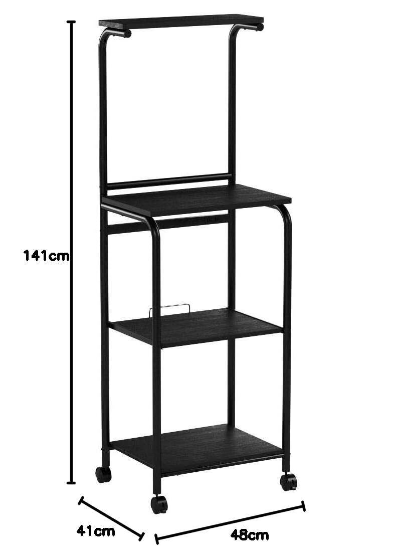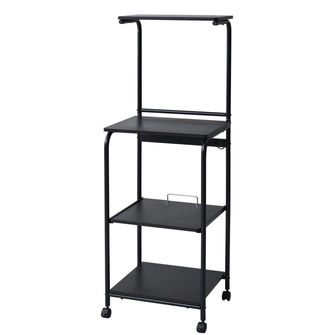 山善(YAMAZEN) レンジラック 幅48×奥行41×高さ141cm スライド棚 2口コンセント ストッパー付きキャスター レンジ台 ラック トースターラック 組立品 ダークブラウン/マットブラック GRW-48R(DBR/MBK)