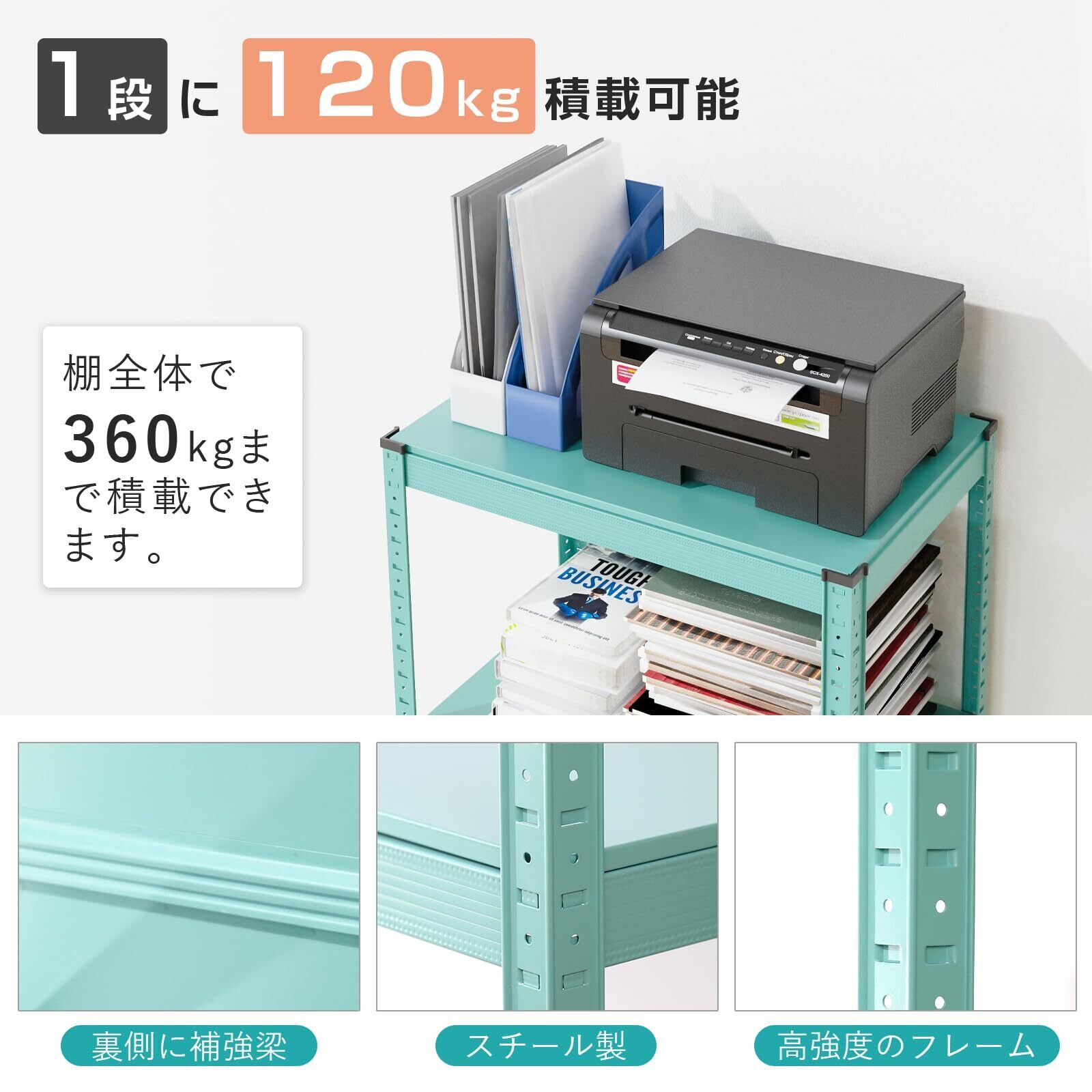 耐荷重:棚1段あたり120kg ※耐荷重は測定値であり値ではありません。