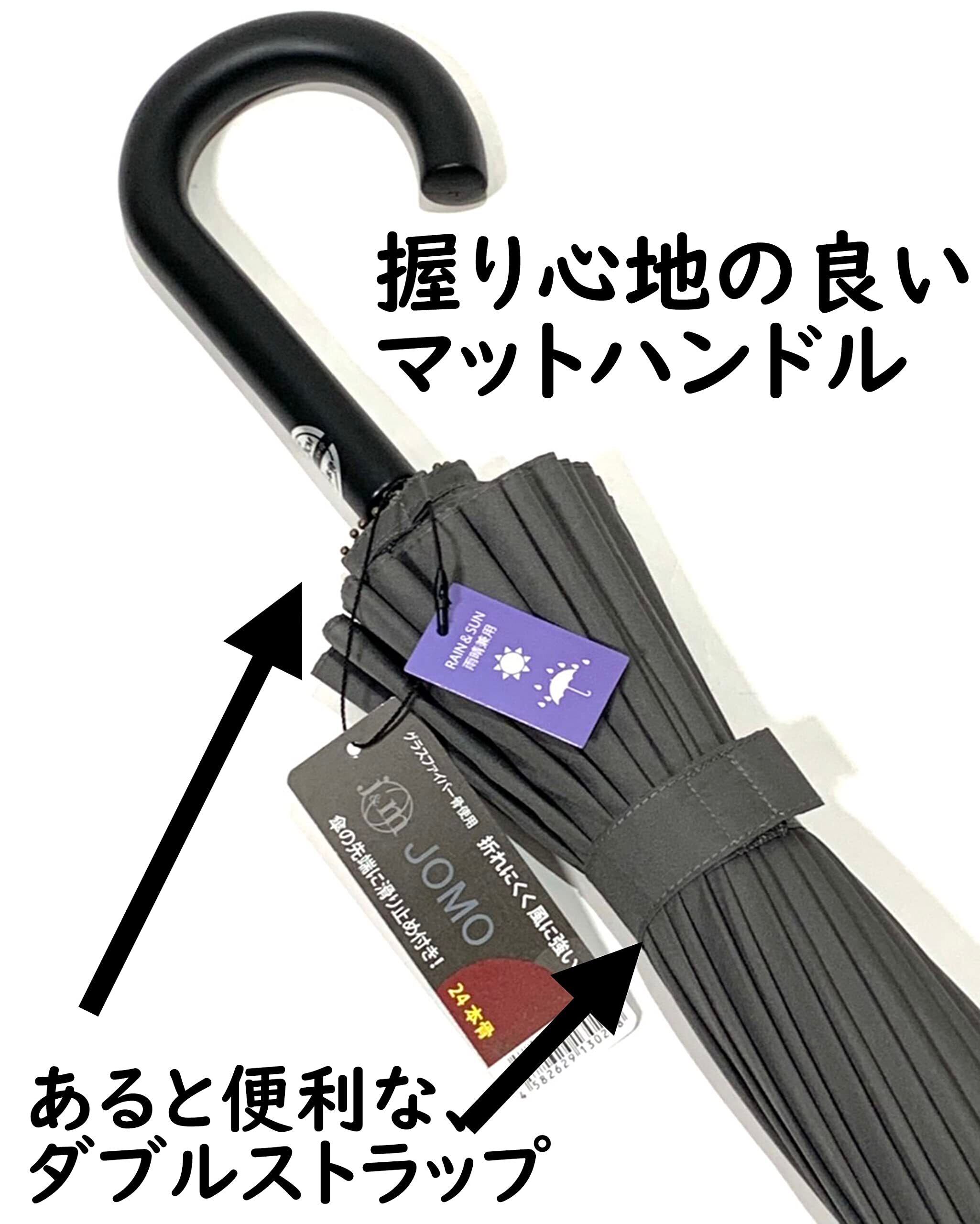 ジョモ コーポレーション(JOMO Corporation) 長傘 雨傘 メンズ 24本骨傘 大きい 65cm 和傘 軽量 耐風 グラスファイバー骨 立てかけやすい 滑りにくい 便利 ラバー先端 グレー 灰 (親骨65cm 直径110cm) 撥水 UVカット生地