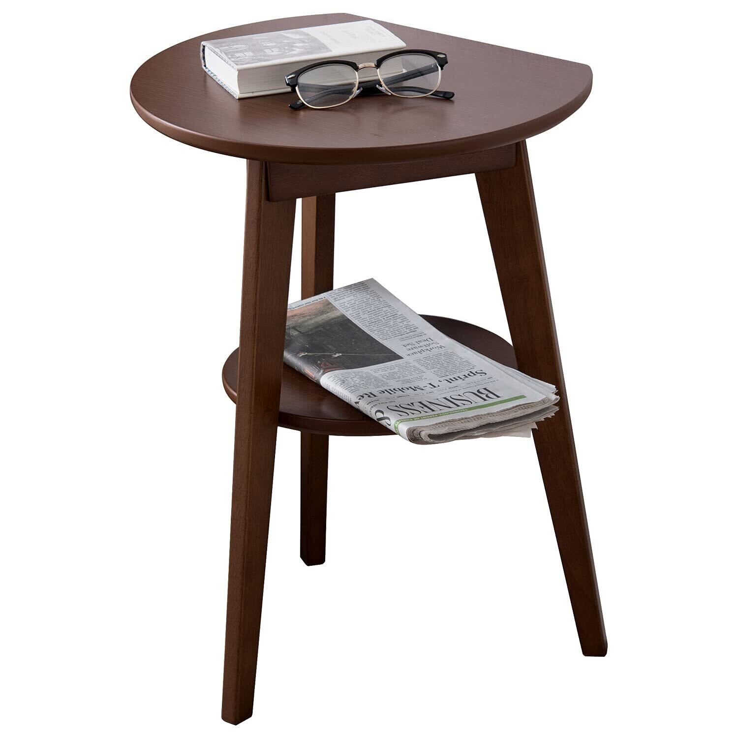 萩原(Hagihara) サイドテーブル 丸型 机 ナイトテーブル 【壁付けできる】 丸テーブル 天然木 ダークブラウン VT-7972DBR
