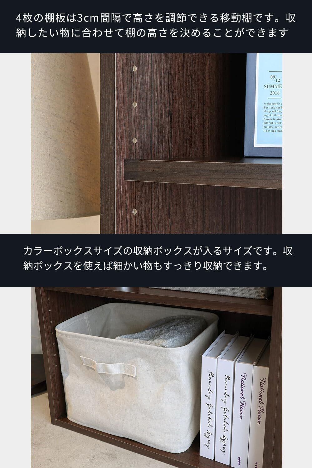 4枚の移動棚は3cm間隔で取り付け高さを調整する事ができます。