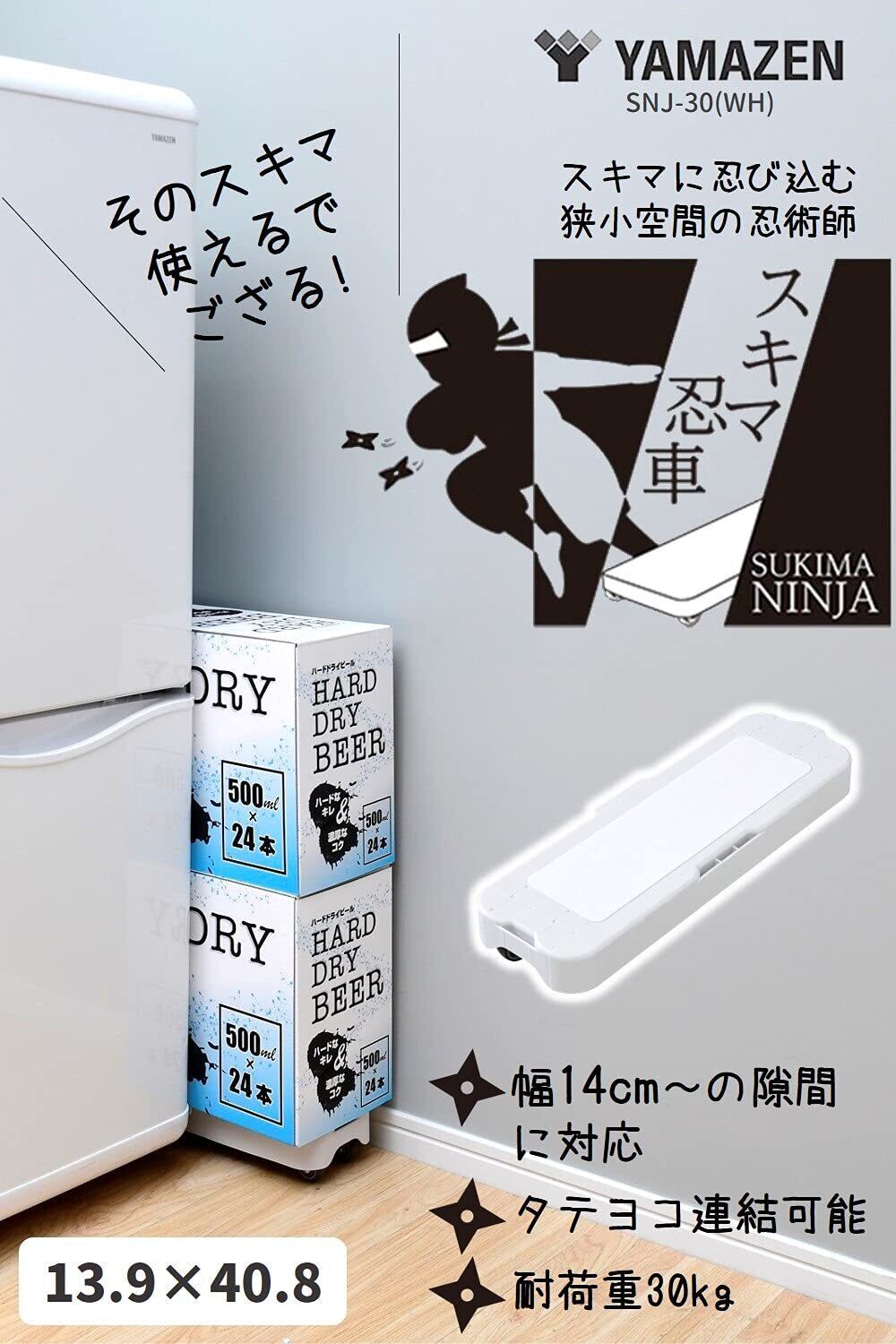 山善(YAMAZEN) 台車 スリム 耐荷重30kg ストック・押入れ・キッチン収納 キャスターが目立たない すべり止め付き 幅13.9×奥行40.8×高さ6.4cm 連結可能 平台車 スキマ忍者 完成品 ホワイト SNJ-30(WH)