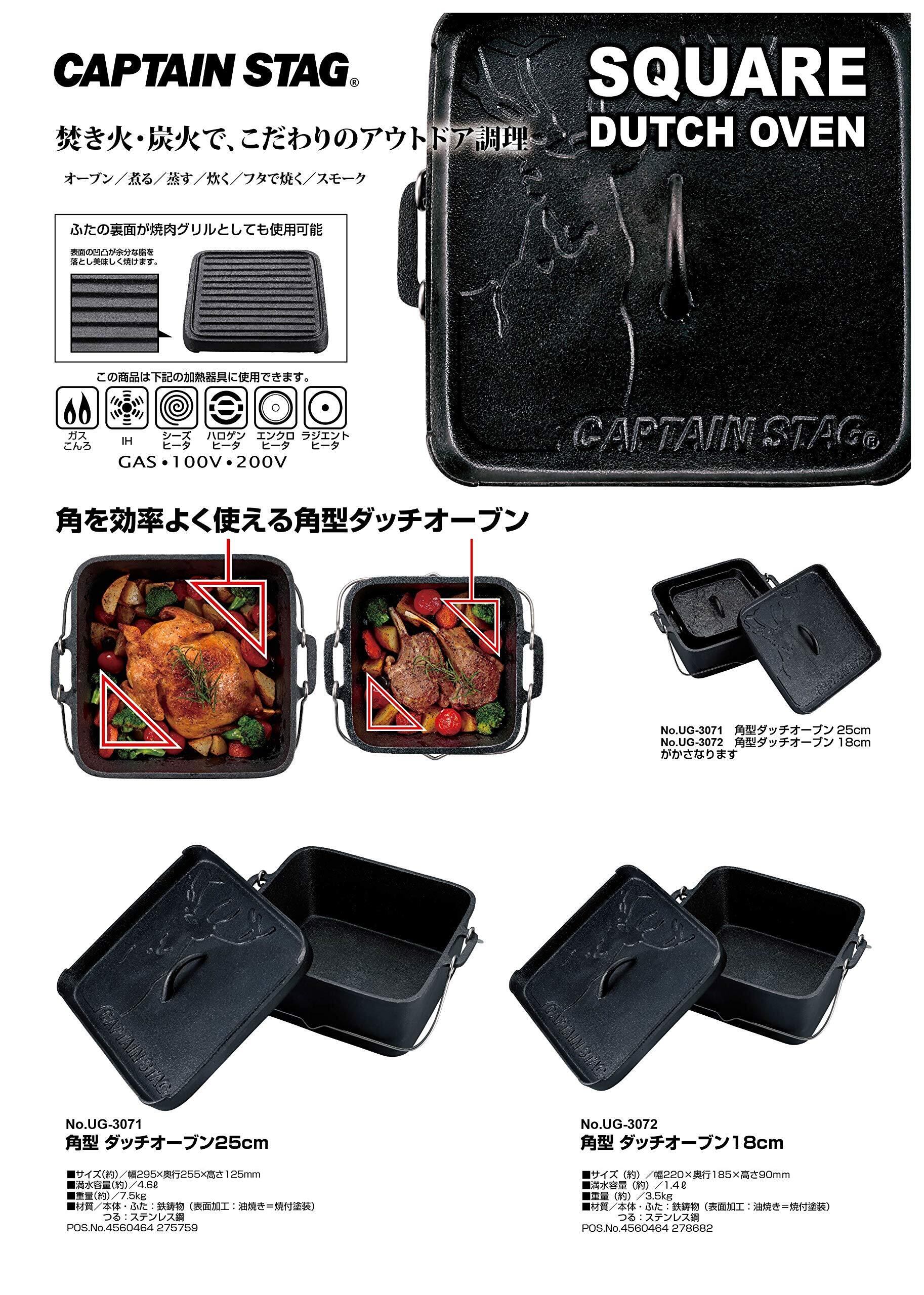 キャプテンスタッグ(CAPTAIN STAG) ダッチオーブン 鉄鋳物 角型 ダッチオーブン シーズニング不要 UG-3071/UG-3072
