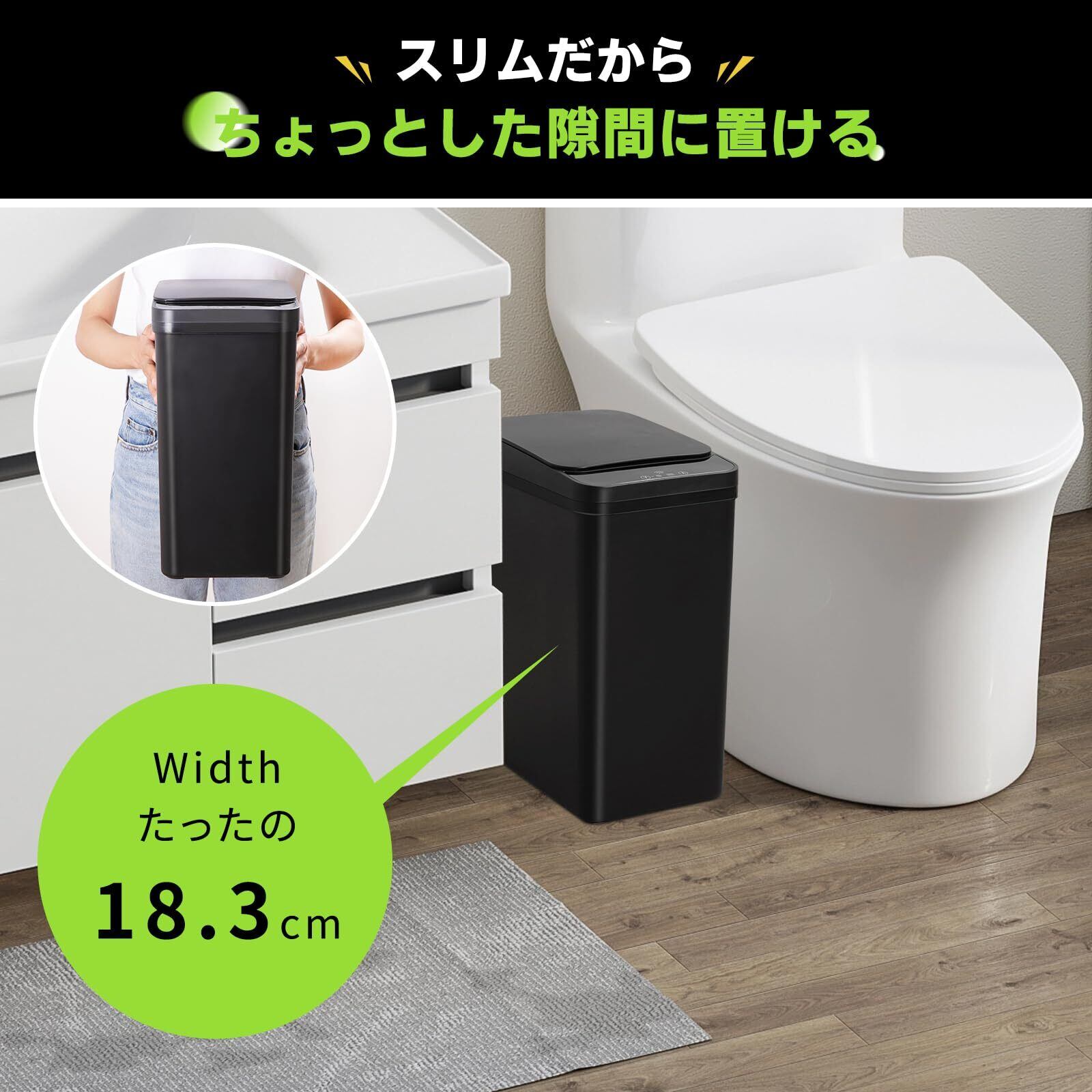 スリム ゴミ箱 自動開閉 15L 自動ゴミ箱 電池式 蓋付き ダストボックス 幅18.3×奥行26.8×高さ36cm ゴミ箱 おしゃれ 袋が見えない センサー付き ごみ箱 開けっぱなし可能 薄型 生活防水 省スペース リビング 洗面所 トイレ オフィス キッチン
