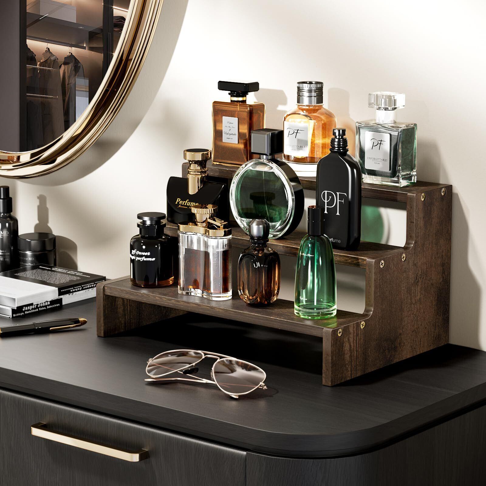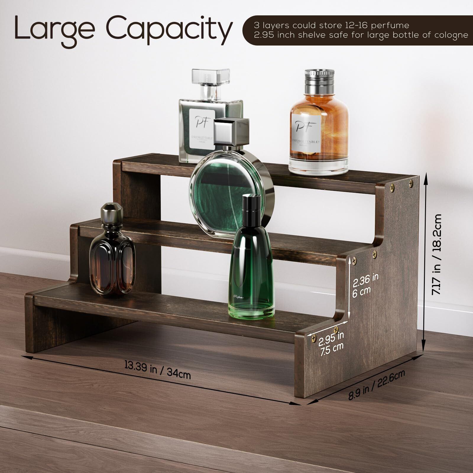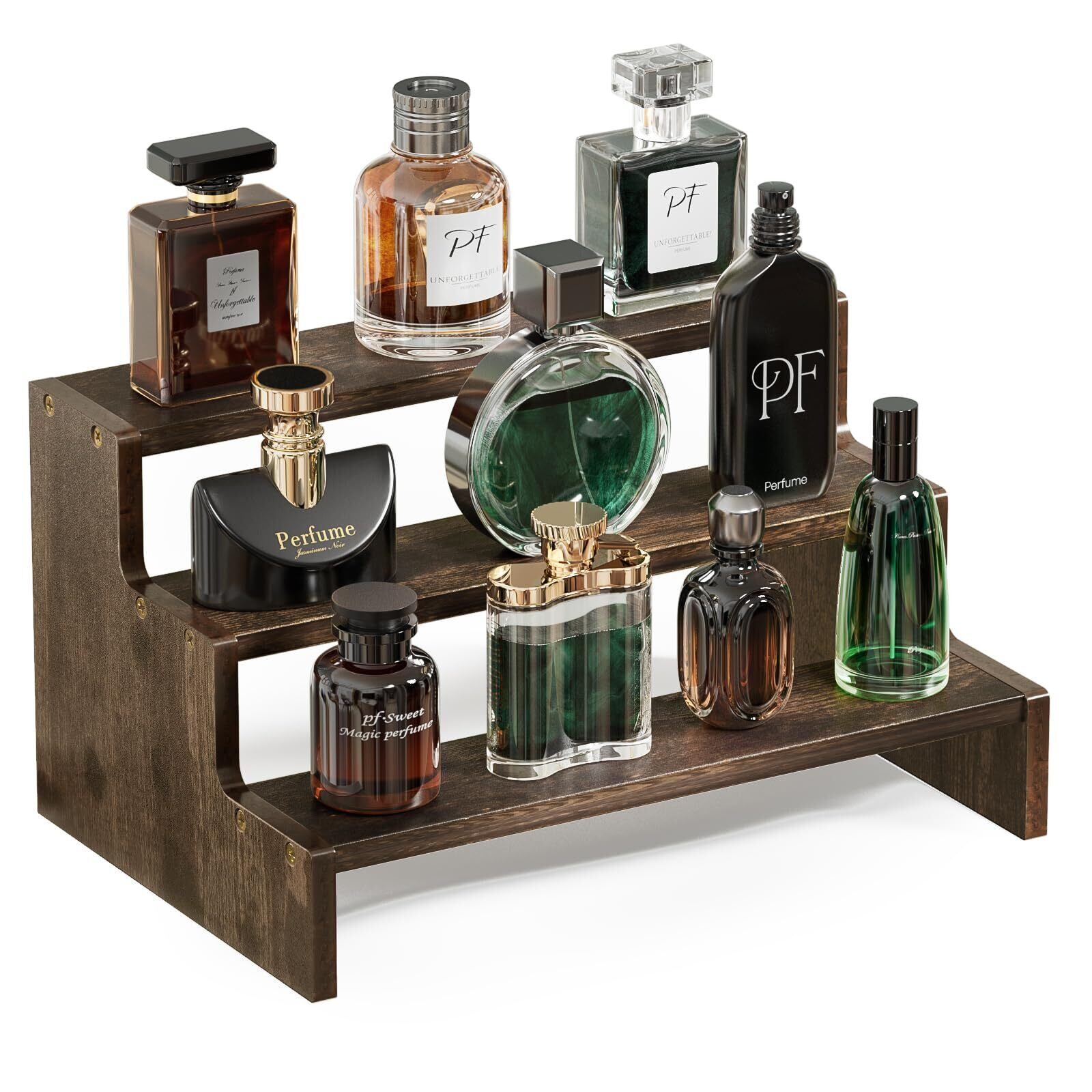 ProCase 男性用木製コロンオーガナイザー、3段香水オーガナイザー、メンズコロンスタンドホルダー収納、フレグランス、キャンドル、化粧品、カップケーキ、フィギュア、スパイス用ディスプレイライザーシェルフラック